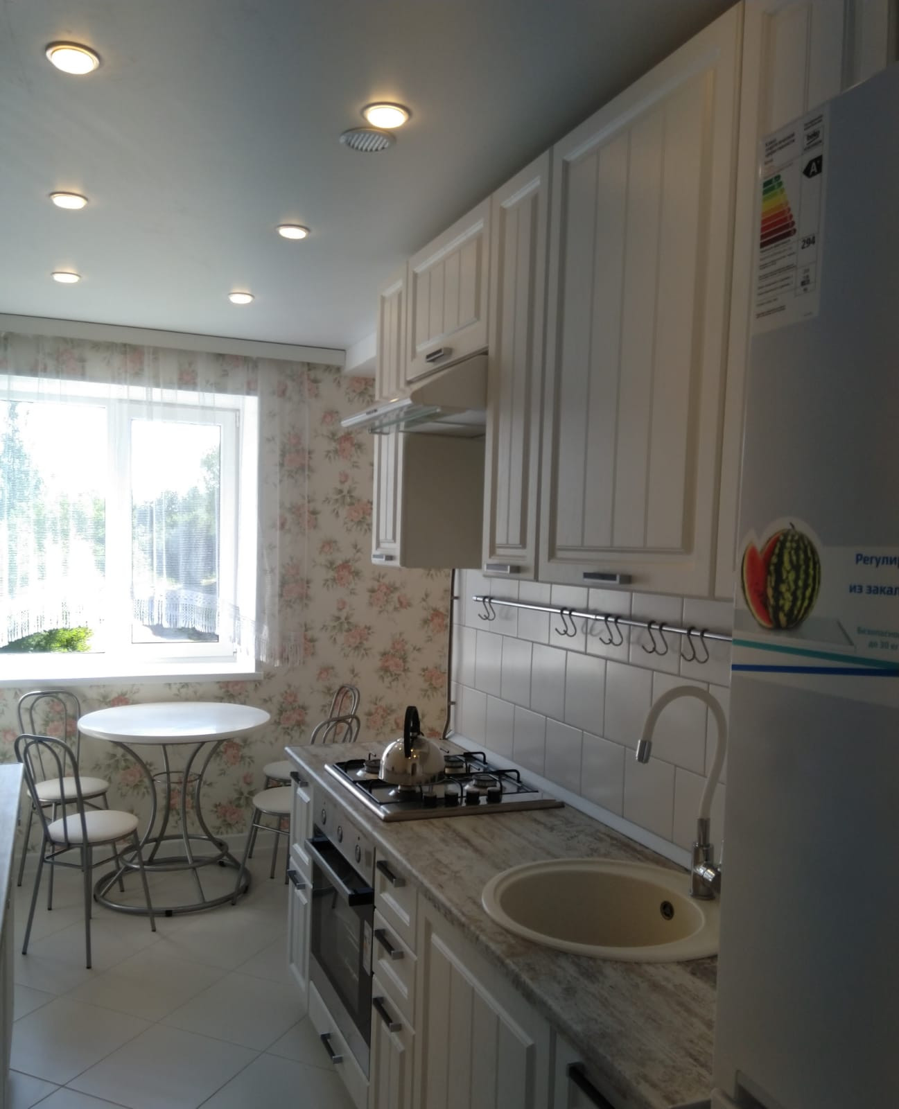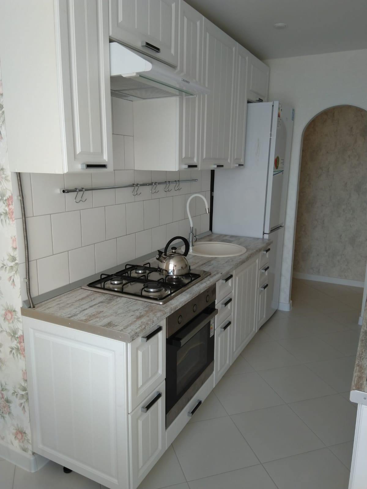 Вся мебель новая, фабричная. Техника новая, встроенная (духовой шкаф, газовая панель, вытяжка, раковина керамогранит, гибкий кран на кухне...) На кухне новый телевизор, проведен кабель под спутниковое т/в)