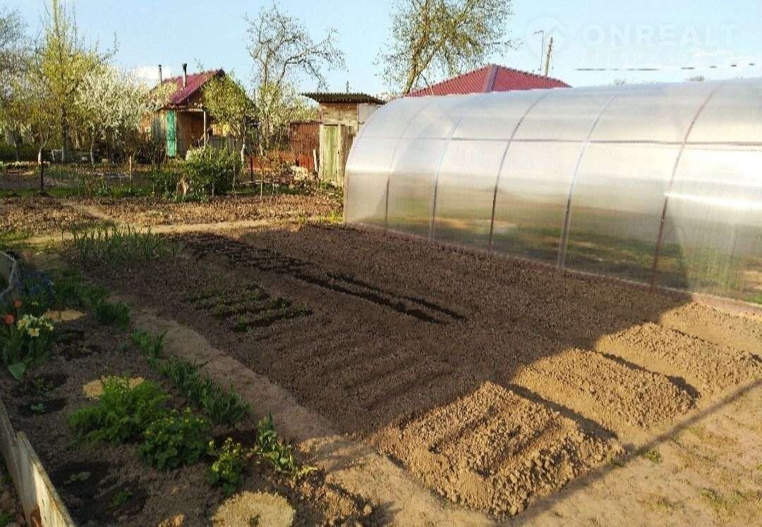 На участке теплица, кустарники, яблони, груши, хоз.постройки.
