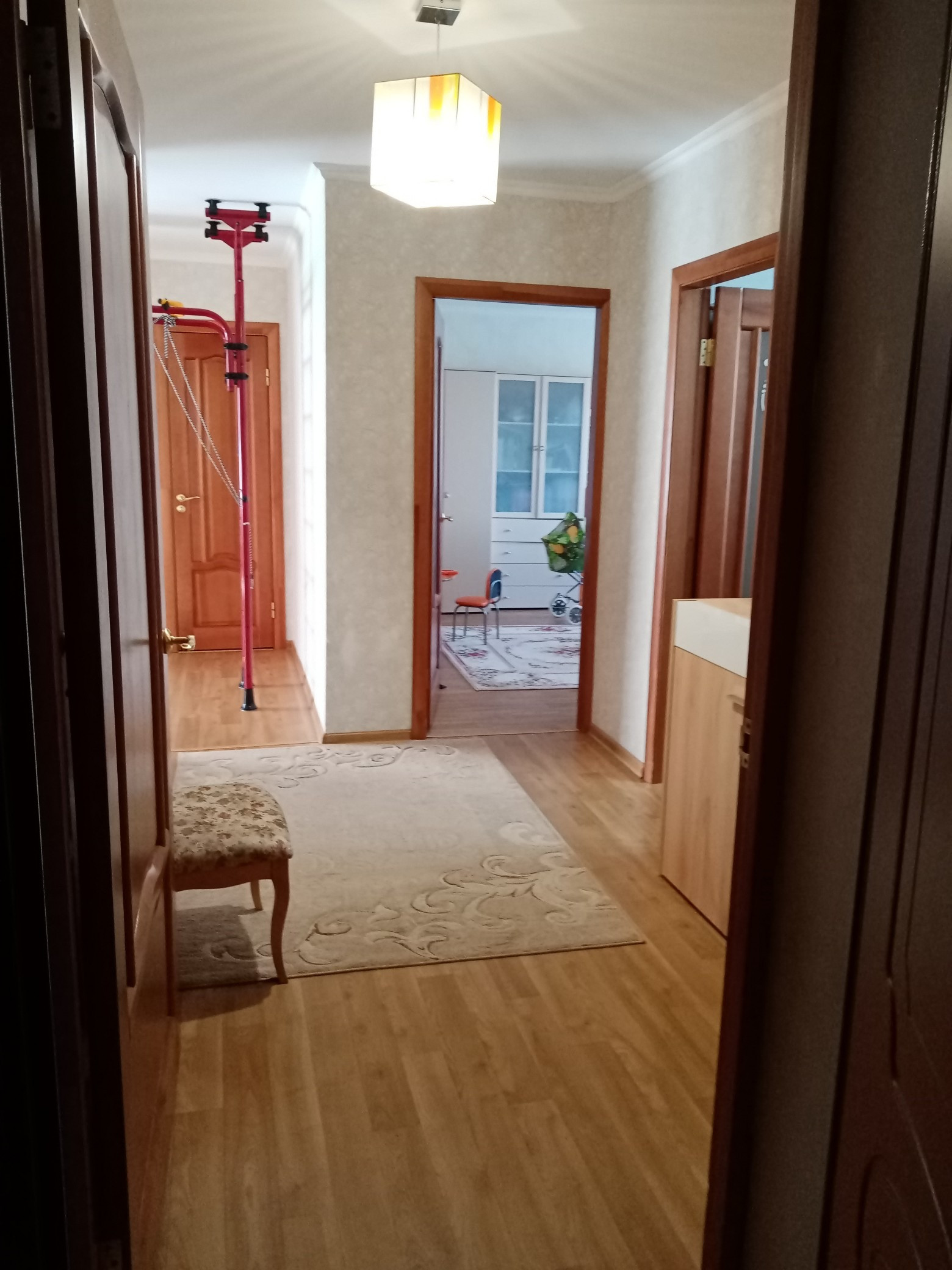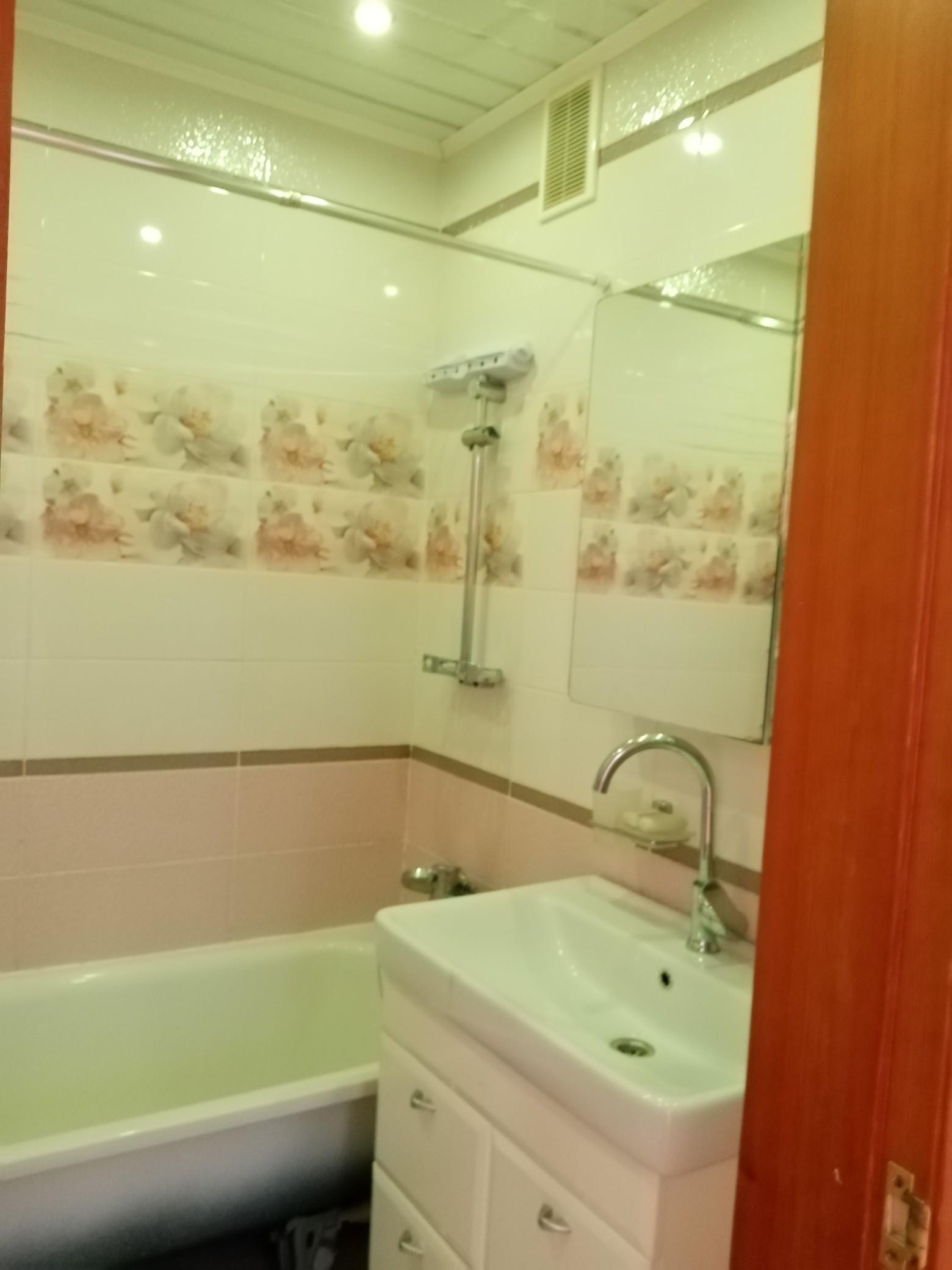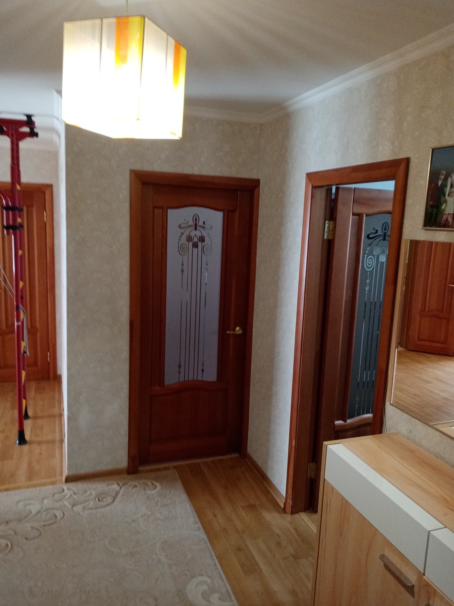 -Санузел раздельный. Установлены шкафчики. Просторная ванная комната, полотенцесушитель, вешалка. Место под стиральную машину.