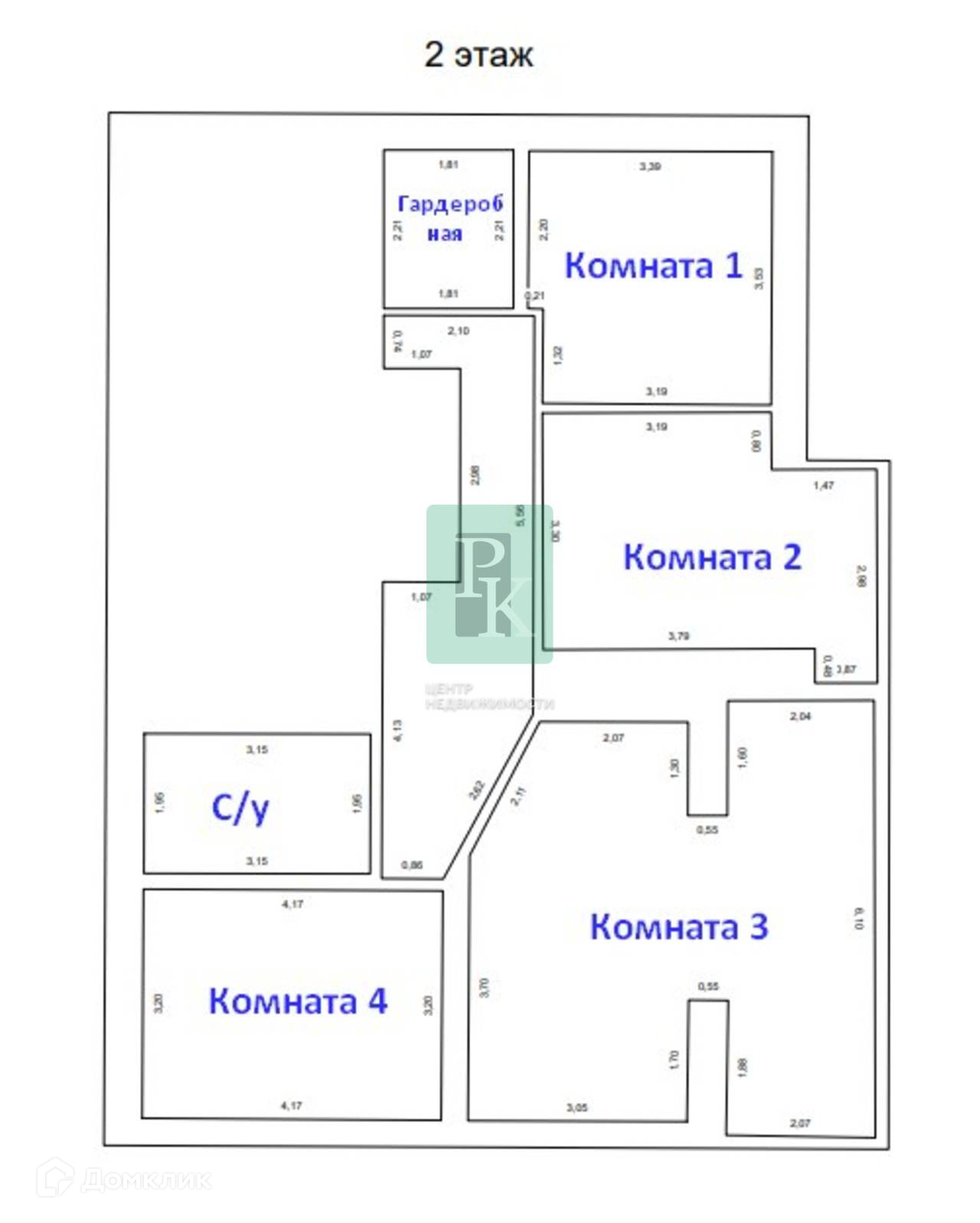 -2 этаж: 4 комнаты, санузел, гардеробная