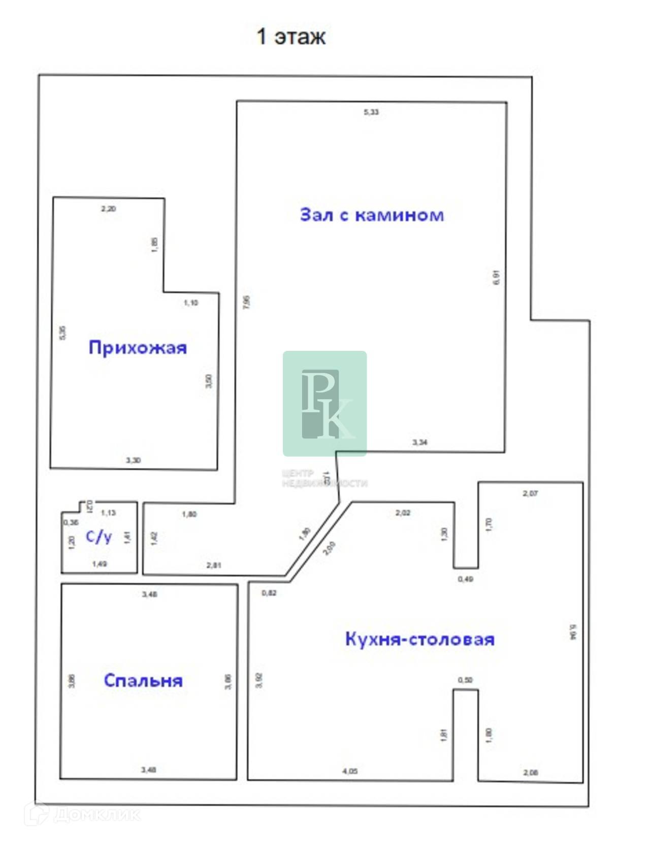 -1 этаж: прихожая, большая кухня-столовая, санузел, зал, спальная комната