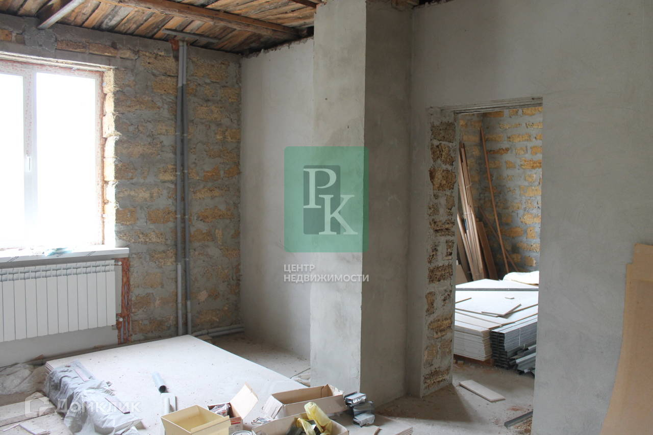 Дом построен из Крымского камня - ракушки, фундамент - ленточный монолит, фасад утеплен, крыша - ондулин, дом в процессе ремонта, планируется новый забор и обшивка фасада.
