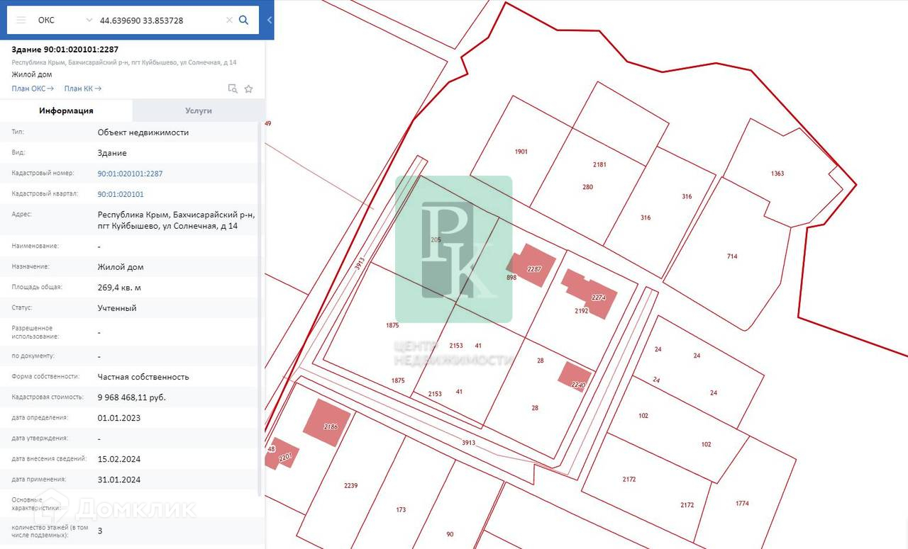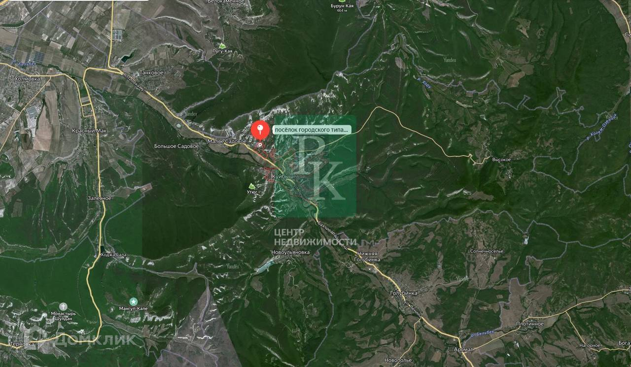 Дом 269,4 м² на участке 9,7 сотки, двухэтажный. Расположен в Республике Крым, Бахчисарайский район, пгт Куйбышево. Коммуникации: электричество 10 кВт, городское водоснабжение, газоснабжение.