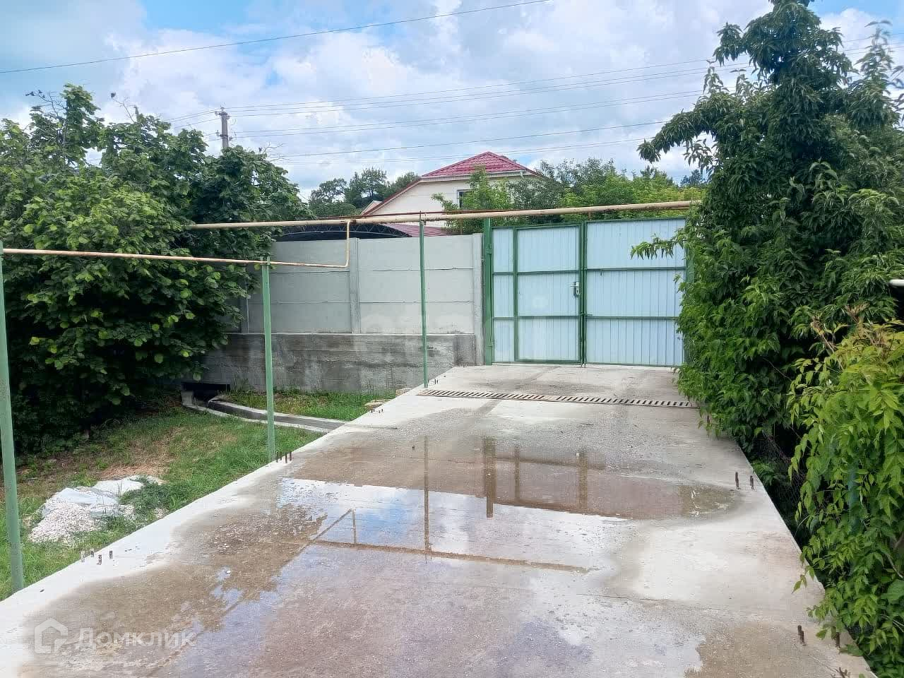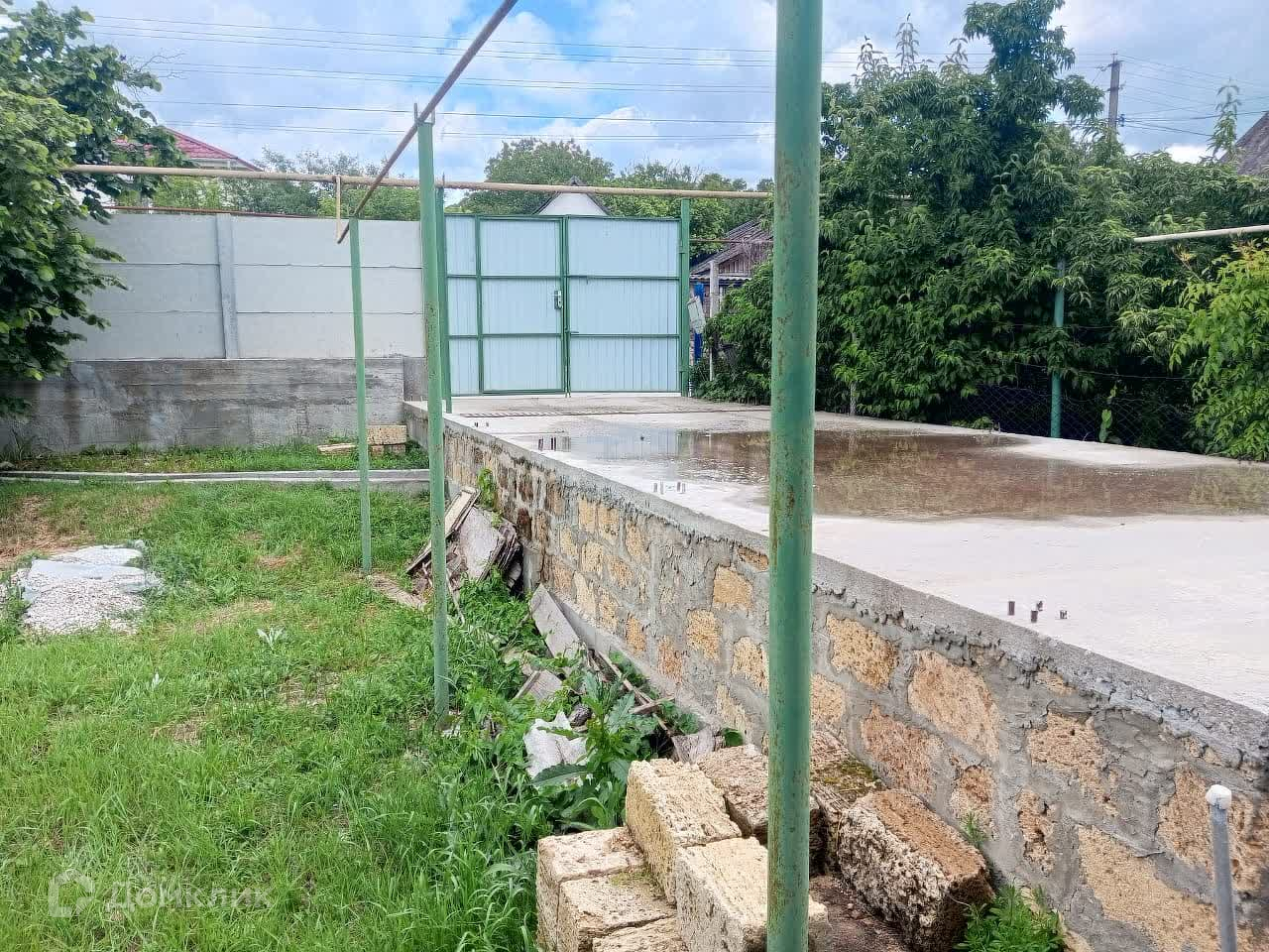 Во дворе залита монолитная площадка для автомобиля с заготовками для навеса или полноценного гаража.