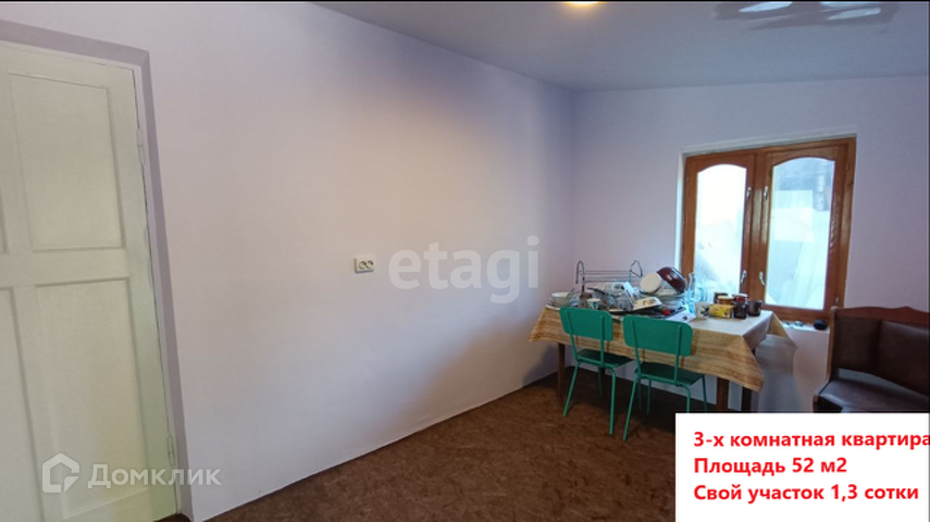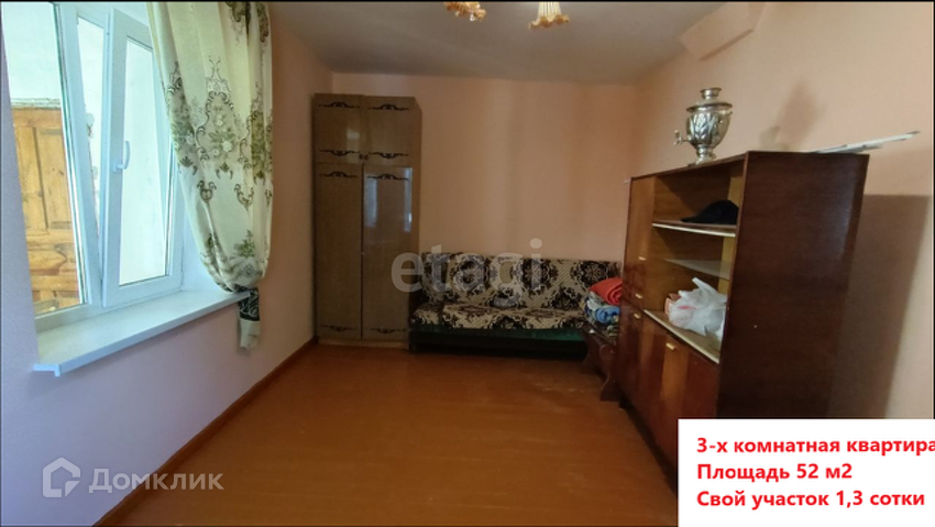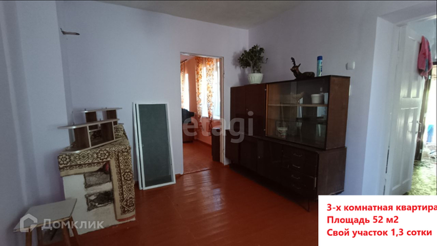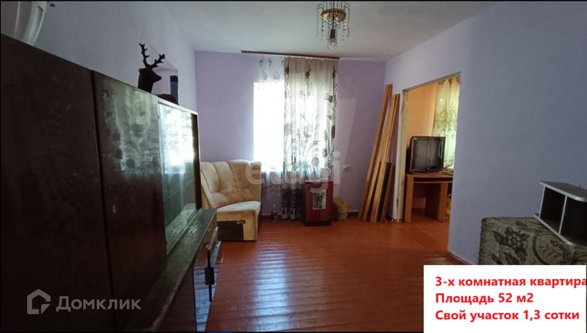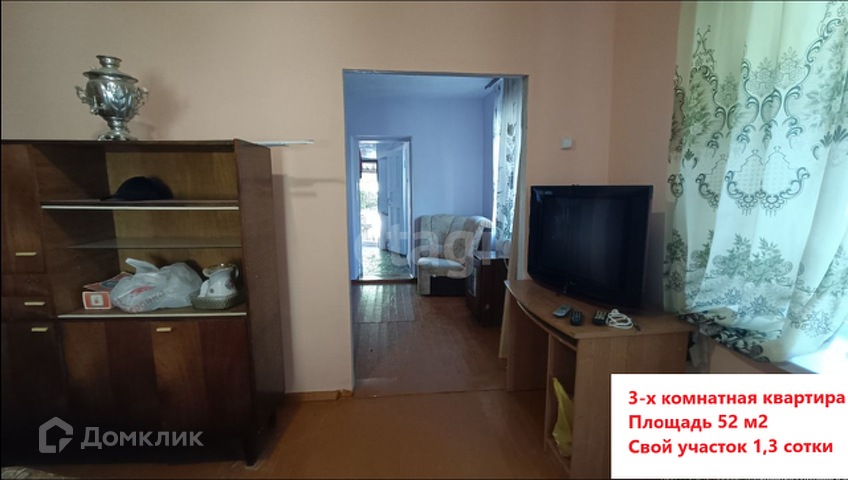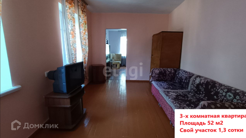 В продаже 3-х комнатная квартира с косметическим ремонтом и со своим участком 1.5 сотки.