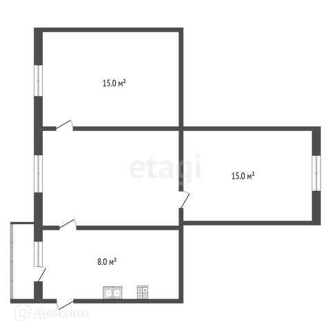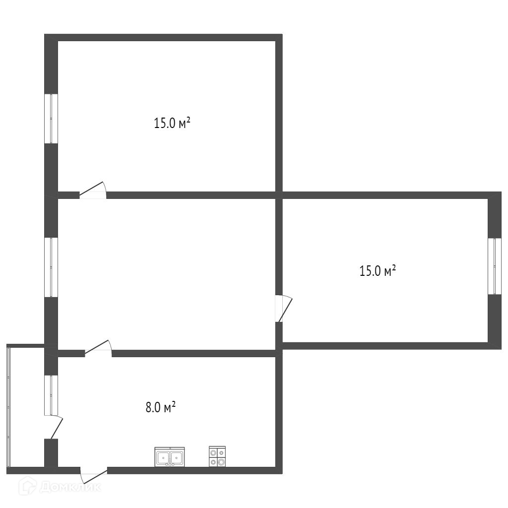 2 комнаты раздельные по 15 м каждая, 3-я комната(холл) проходная,совмещенный санузел с душевой кабиной, просторная кухня 8 м2.