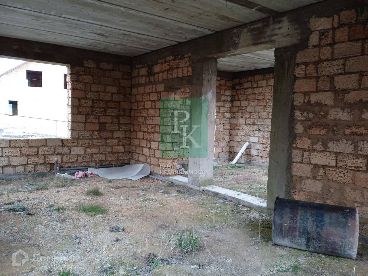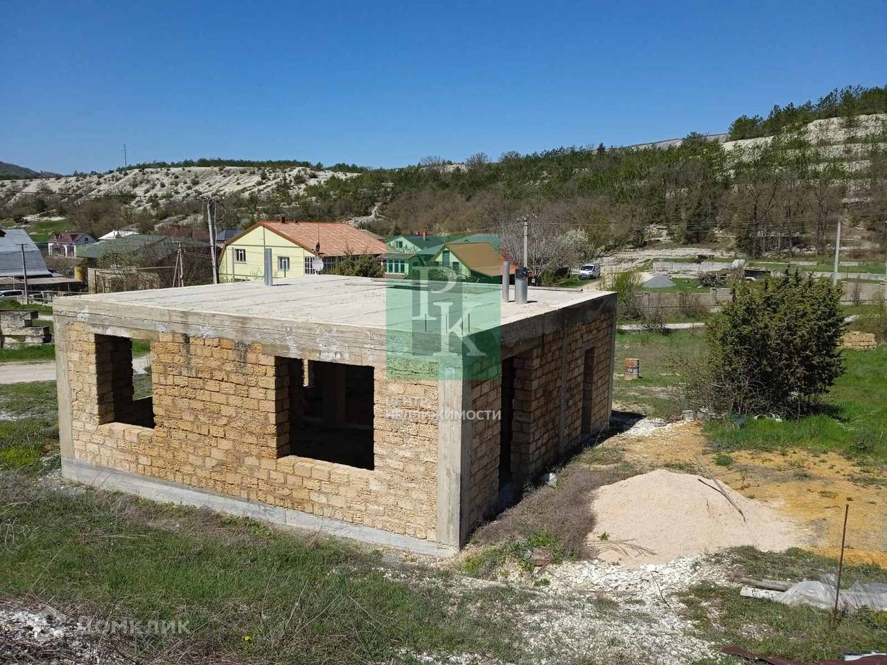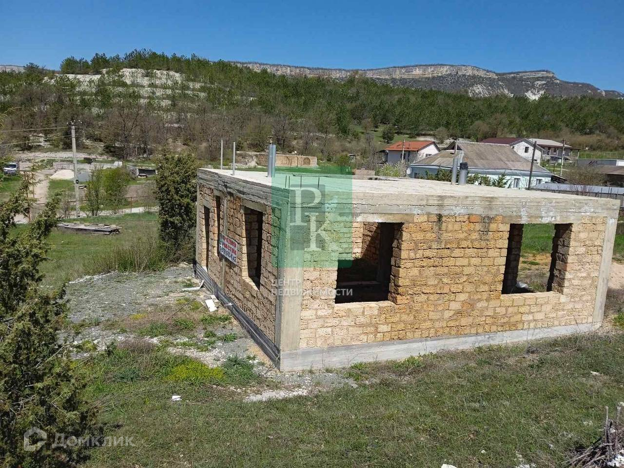 На участке расположен одноэтажный дом на этапе незавершенного строительства. Материал стен – природный камень «ракушечник», перекрытия - бетонные плиты. По проекту площадь дома составляет 130м2. Также подготовлен бетонный фундамент для забора.