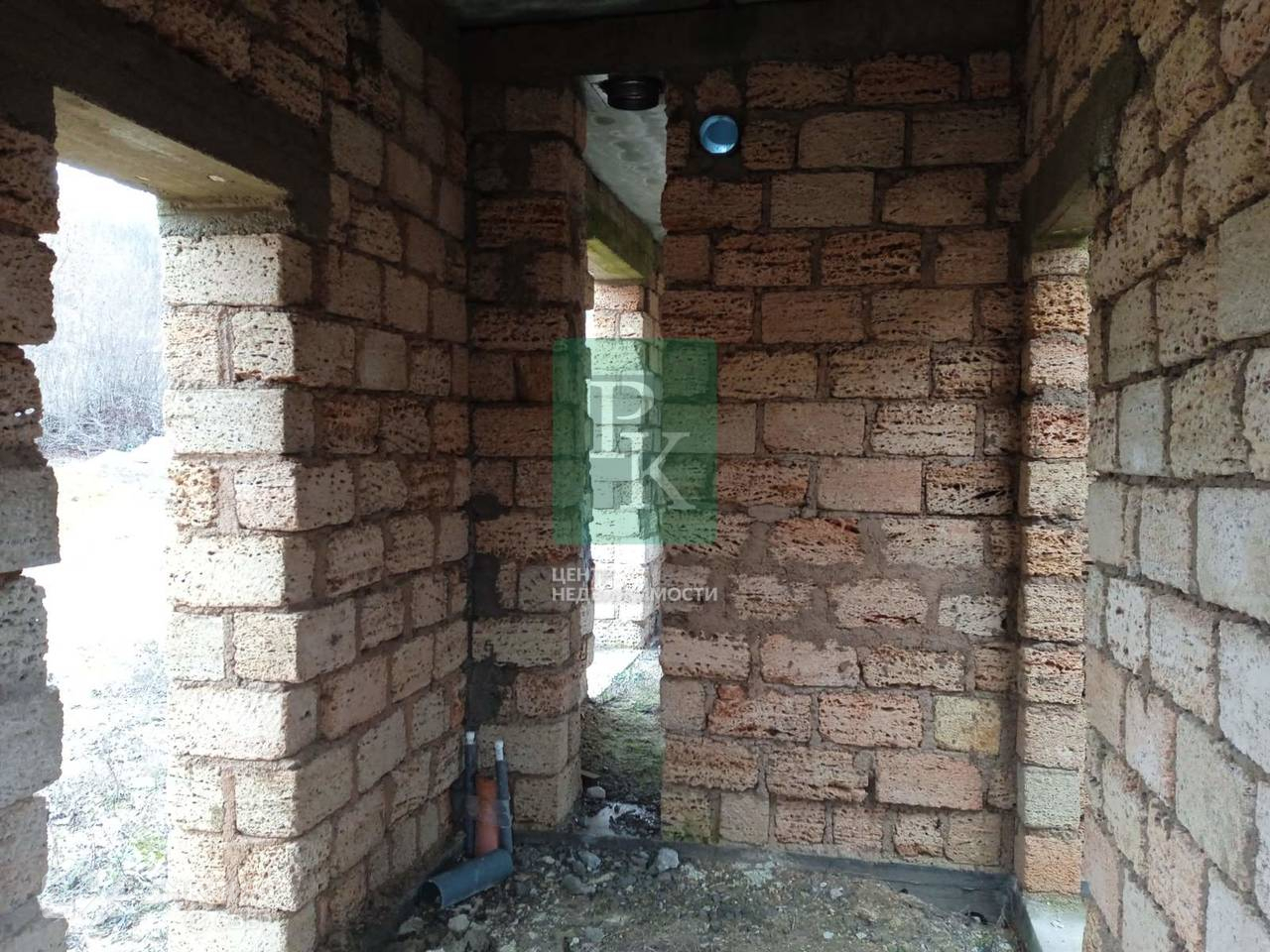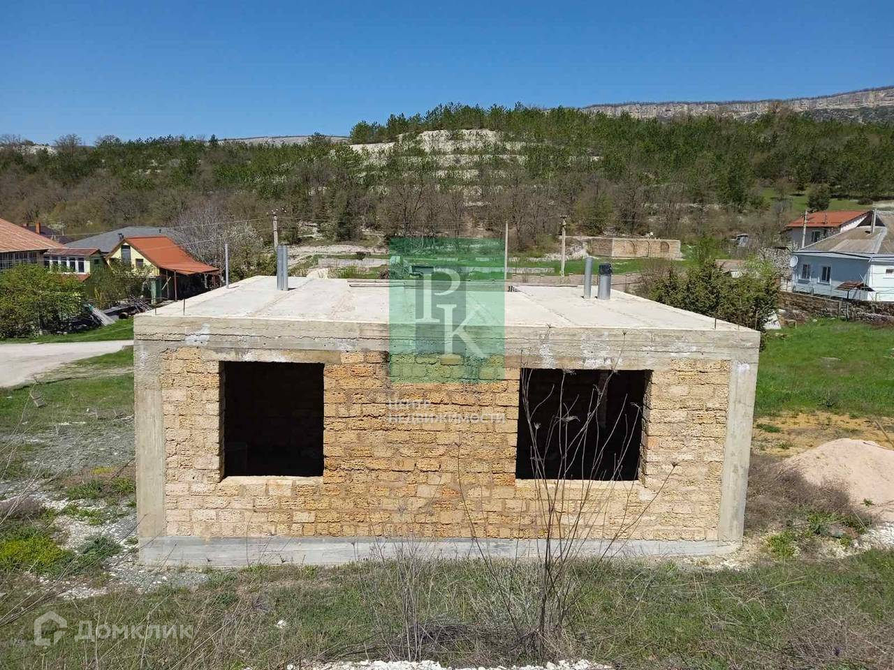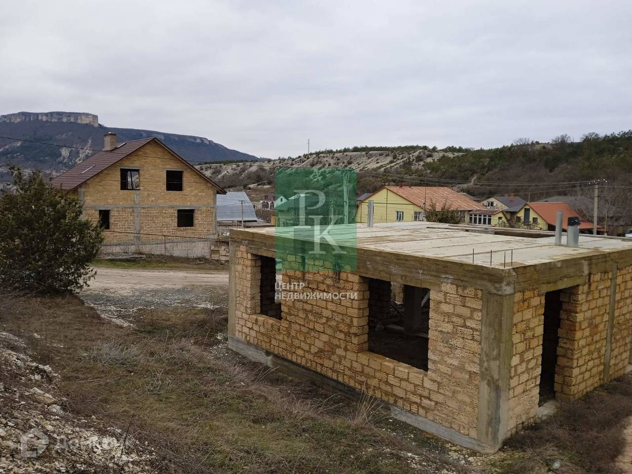 На участке расположен одноэтажный дом на этапе незавершенного строительства. Материал стен – природный камень «ракушечник», перекрытия - бетонные плиты. По проекту площадь дома составляет 130м2. Также подготовлен бетонный фундамент для забора.