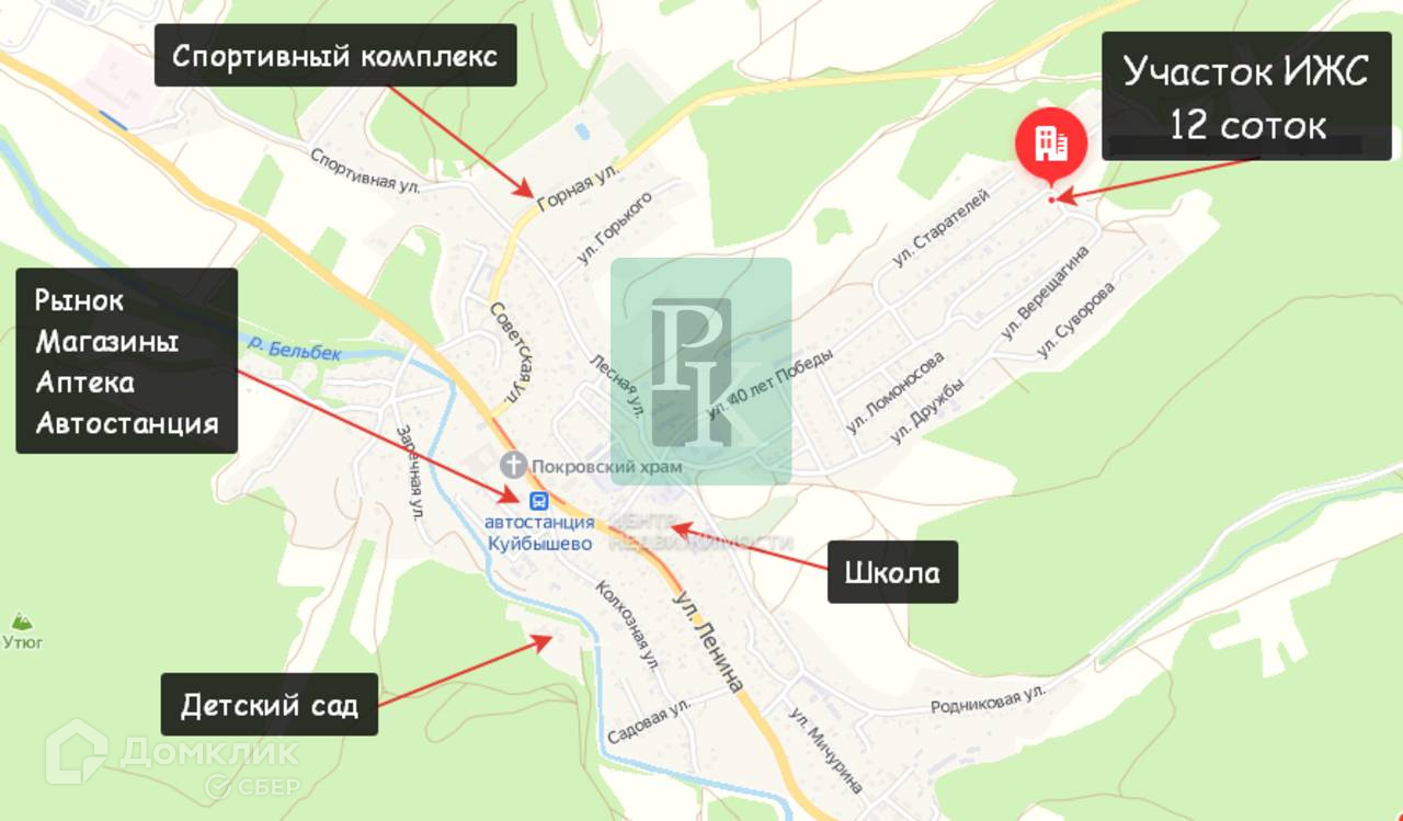 Участок 12,43 сотки (ИЖС) расположен в г. Севастополь, Бахчисарайский район, пгт Куйбышево, улица Маршала Жукова. Участок ровный, с незначительным уклоном. Подъезд грунтовка.