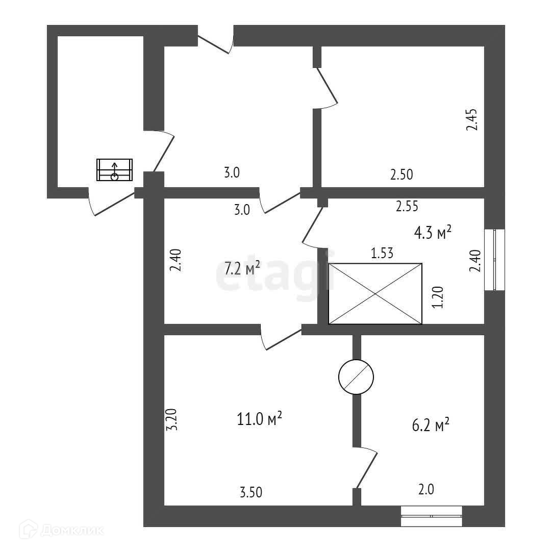Общая площадь 28.7 м2