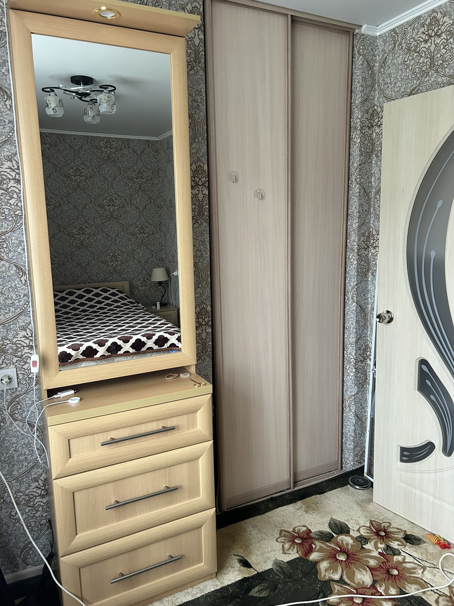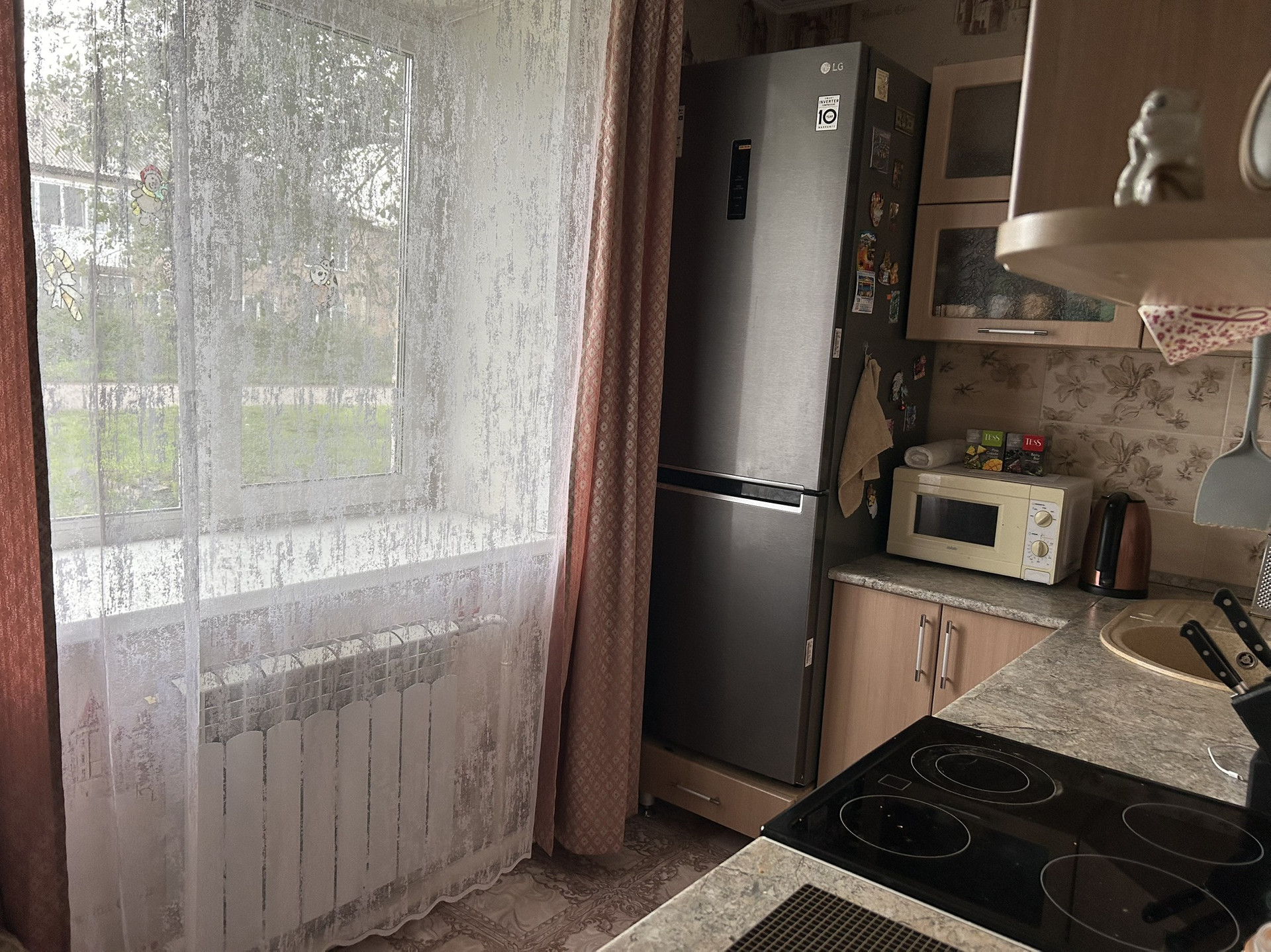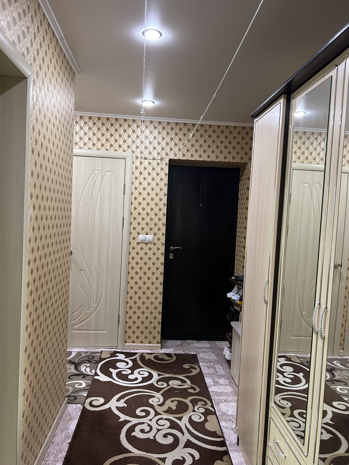 В квартире новые проводка, батареи; встроенные шкафы-купе, натяжные потолки, пластиковые окна, стены выровненные, в полу произведен капитальный ремонт, имеется большой водонагреватель.