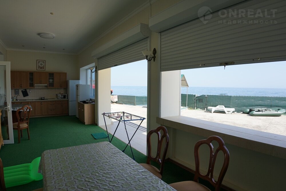 Дом на самом берегу моря, можно любоваться морем и дышать свежим морским воздухом и слушать шум прибоя и свежесть моря из окна или за столом за чашкой кофе,  море в 10 м от стола, первая линия, Оборудован всем для комфортного отдыха, 3 раздельные комнаты для 8 гостей, 3 сан узла, 2 кухни, терасса с жезлонгами. Крытая автостоянка во дворе, территория закрыта и охраняется. Мангал, рядом в 5 мин магазины, кафе, столовая.  Небольшой тихий посёлок Курортное между Коктебелем (10 мин на авто) и Судаком (30 мин на авто), до Феодосии (20 мин на авто). Пляж галечный, немноголюдный, оборудован. На набережной небольшие тихие кафе, детские аттракционы. Рядом есть магазины, кафе, столовая, рыночек. Чистое море, так как небольшой посёлок расположен возле заповедной зоны «КараДаг».