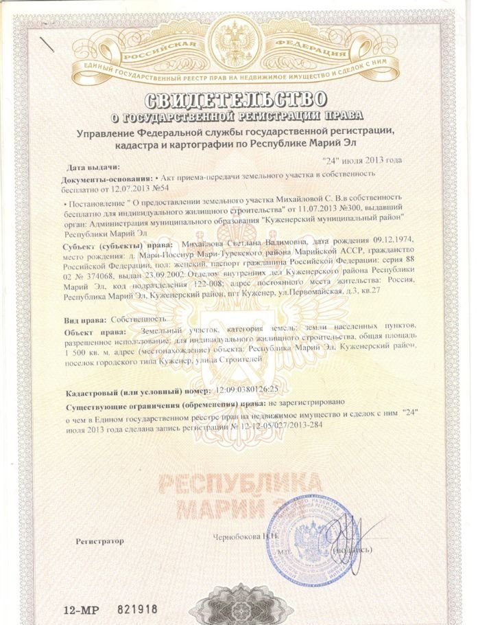 Продам земельный участок по адресу п Куженер, ул Строителей .