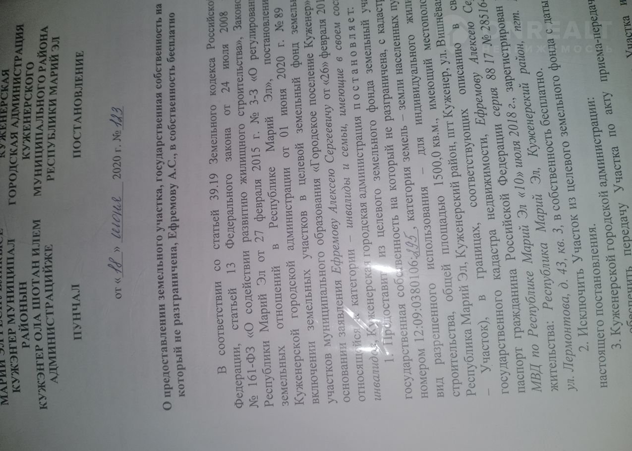Продам земельный участок в п куженер