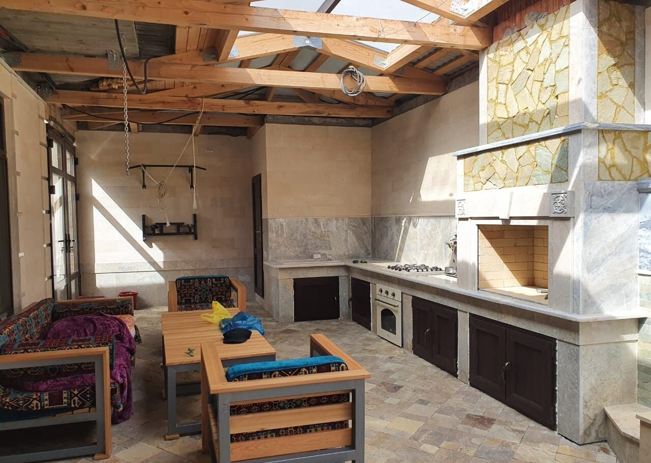 —  Двор крытый , выложен качественным ростовским камнем и утеплен . На крыше двора установлены сверхпрочные окна для дневного света. Во дворе есть все необходимое для отдыха семьи и гостей : летняя кухня, мягкая  деревянная мебель , стол ,холодильники, санузел.  Это все остается !!!Есть полностью оборудованный подвал для хозяйственных нужд, отопительный котел .