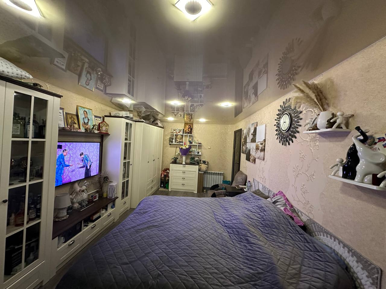 ☝️По всей квартире натяжные потолки со встроенным светом (все работает от пульта, либо с помощью станции Алиса -можно управлять голосом).