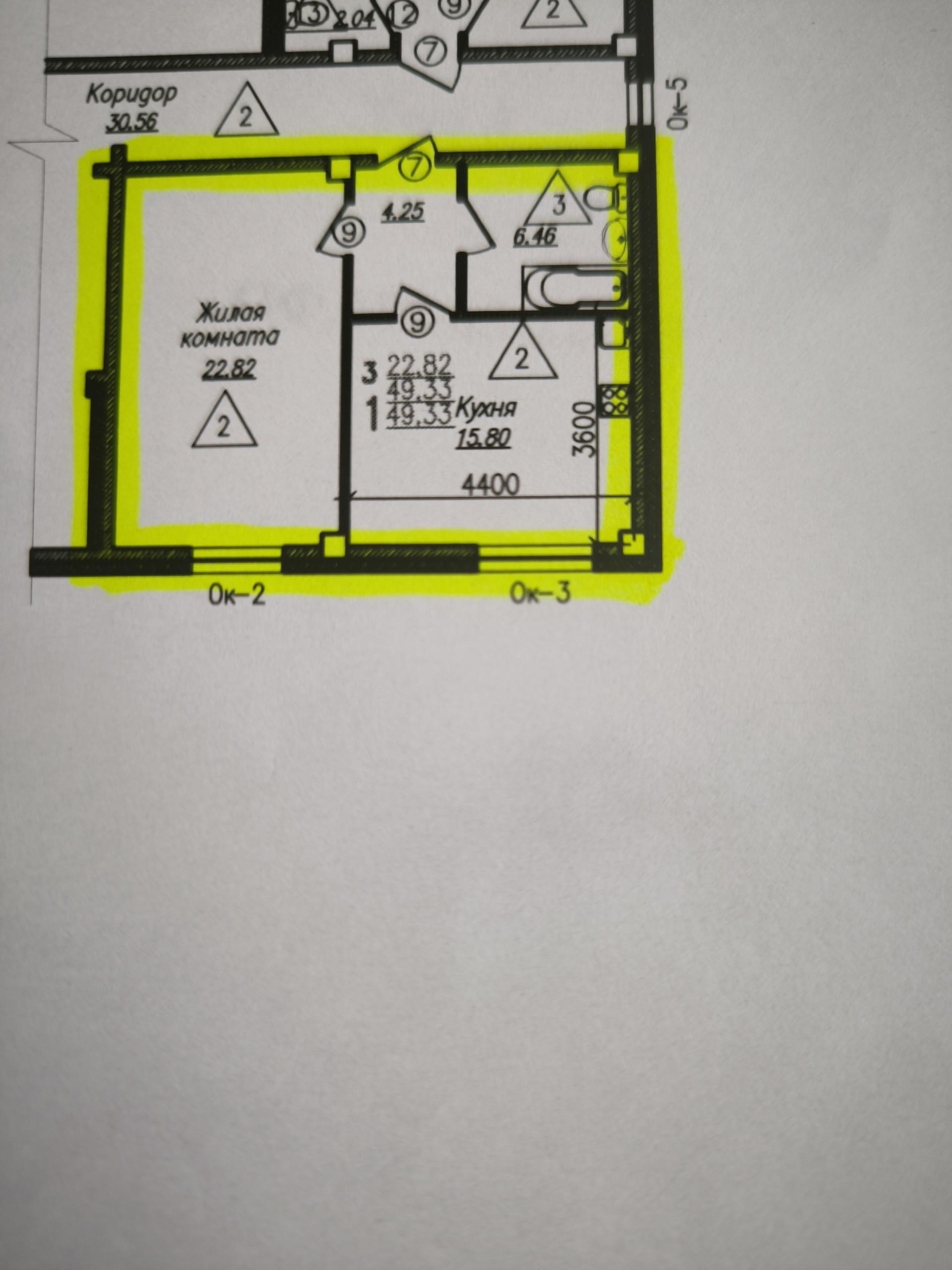 Общая площадь 49.3 м2