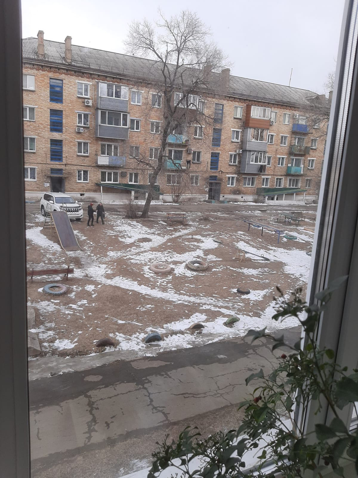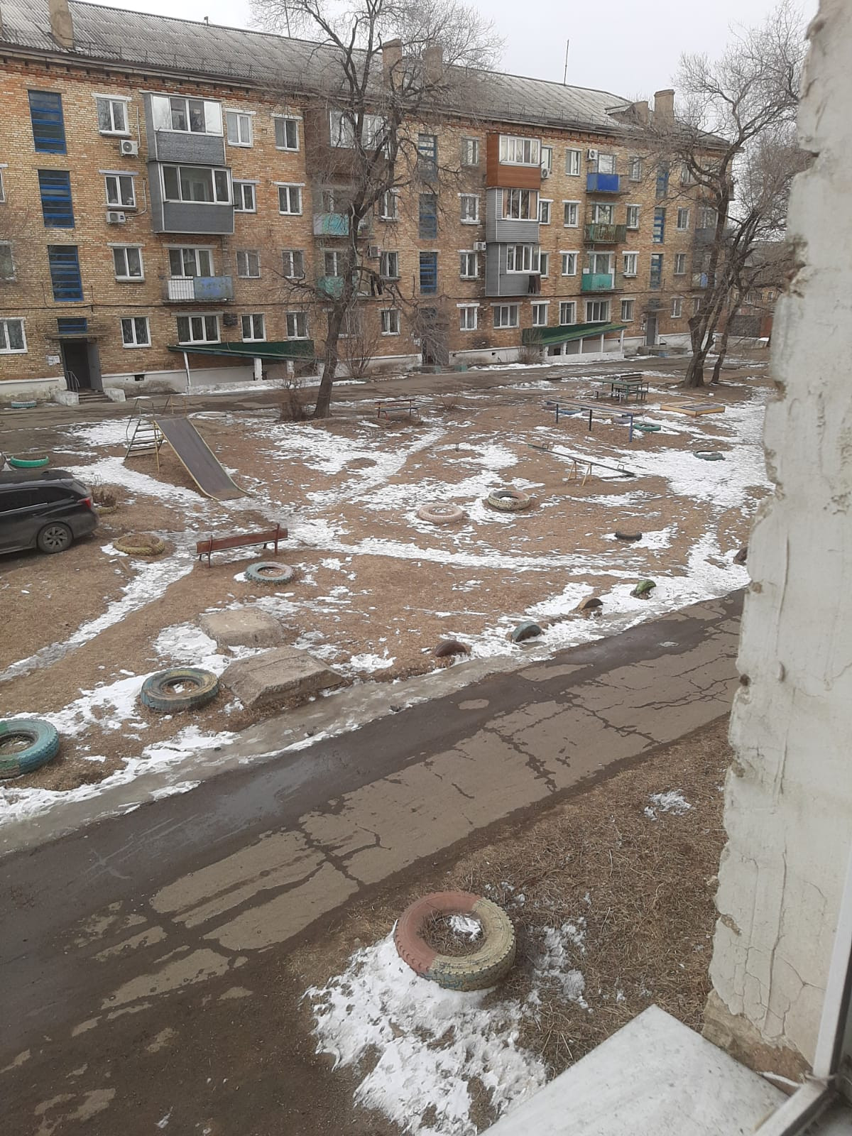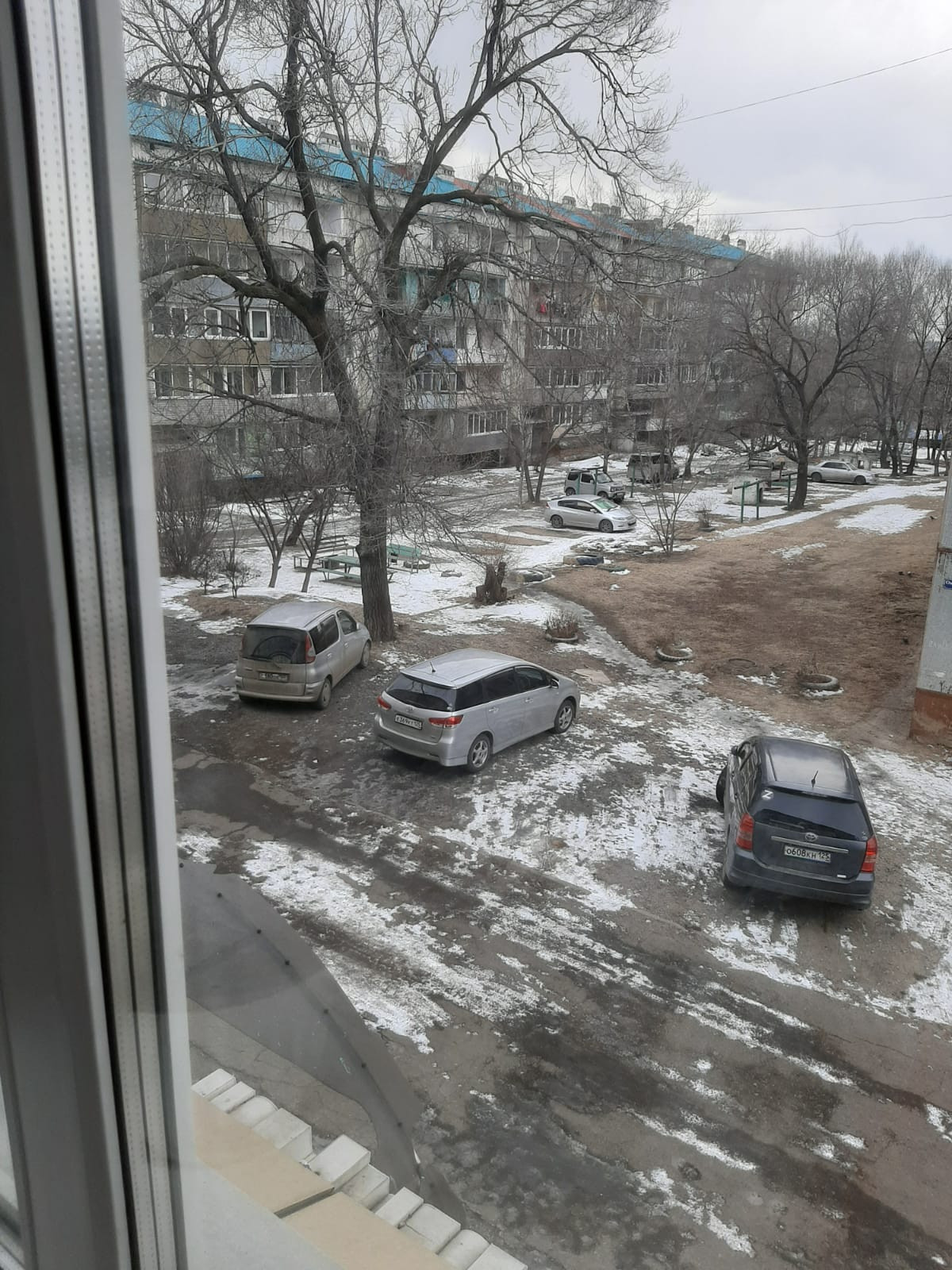 Вид из окна двор, улица