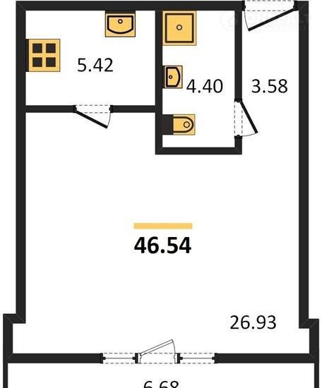 Жилая площадь 26.9 м2