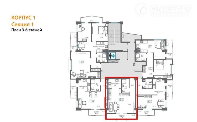 Балкон, лоджия 1 балкон