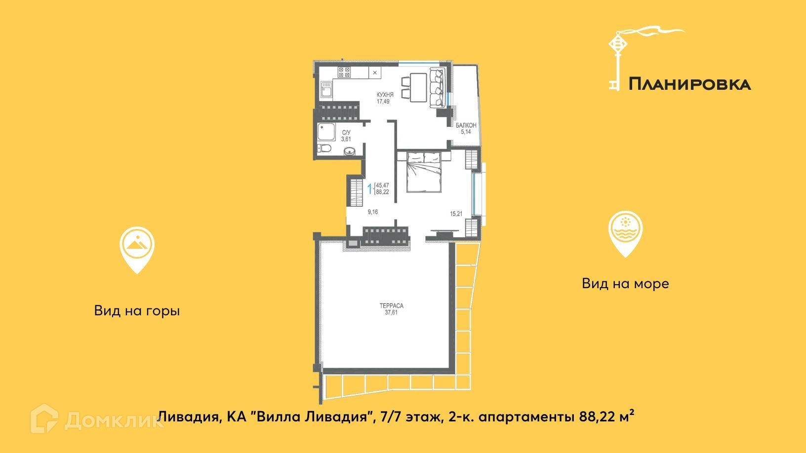 -балкон 5,1 м² и большая терраса с великолепным видом на море.