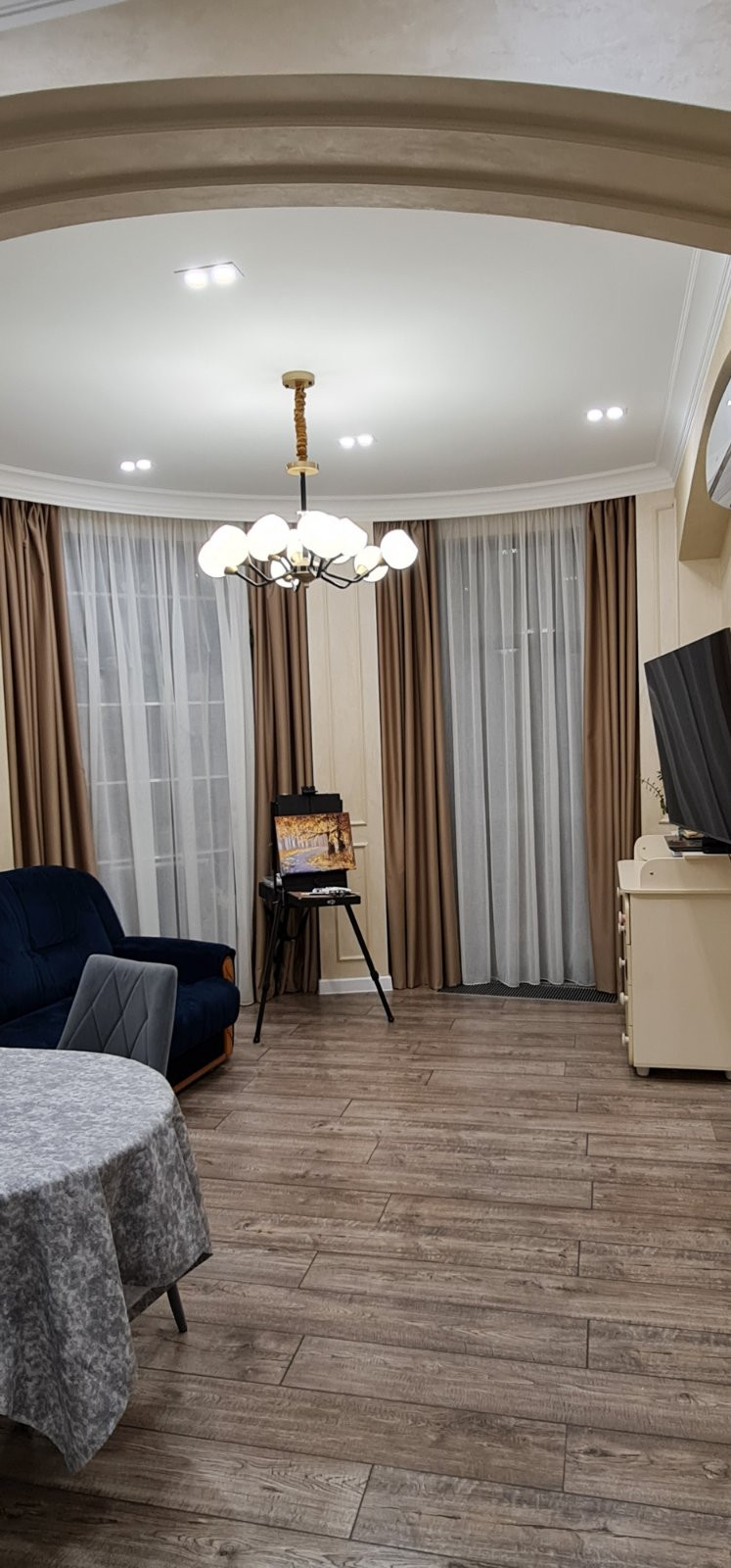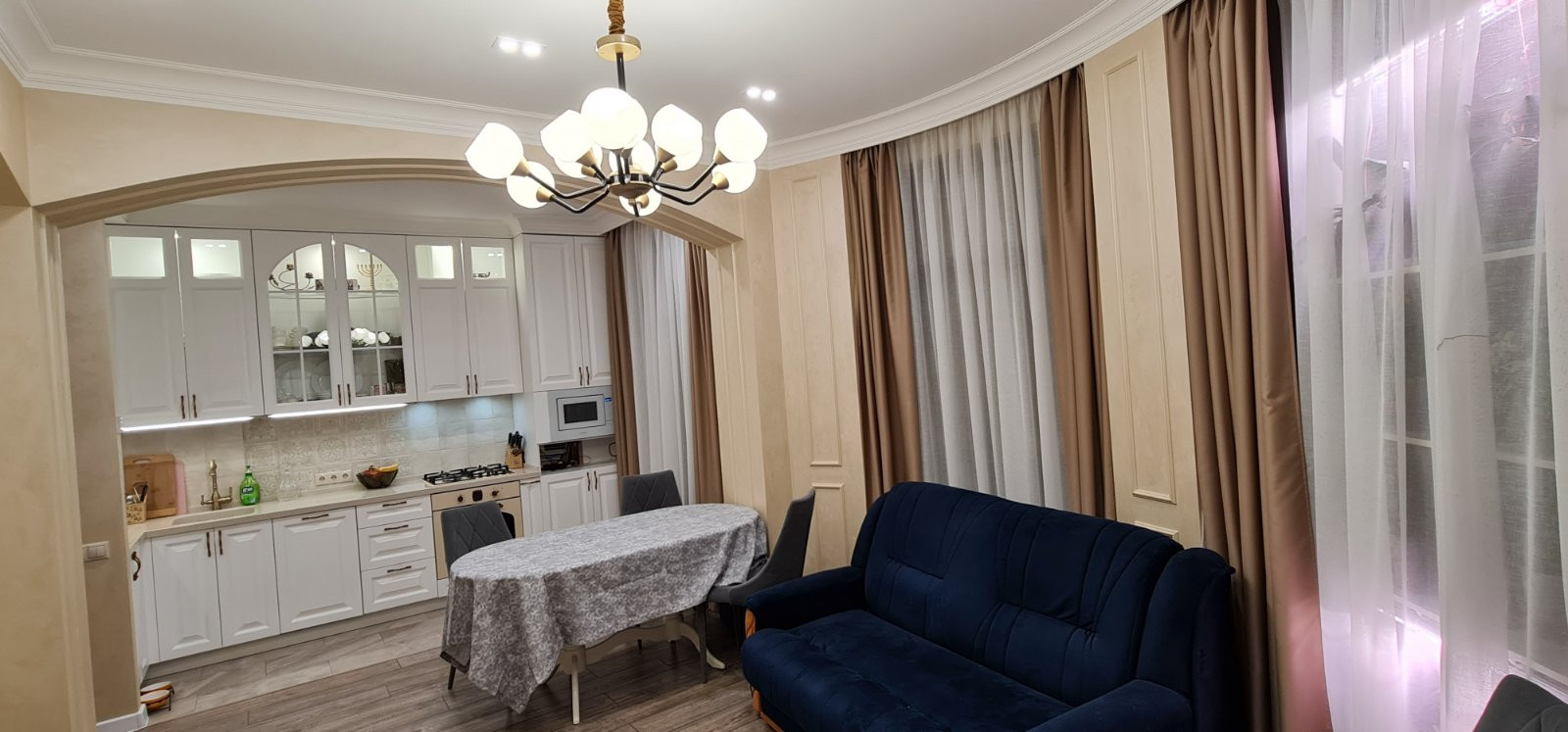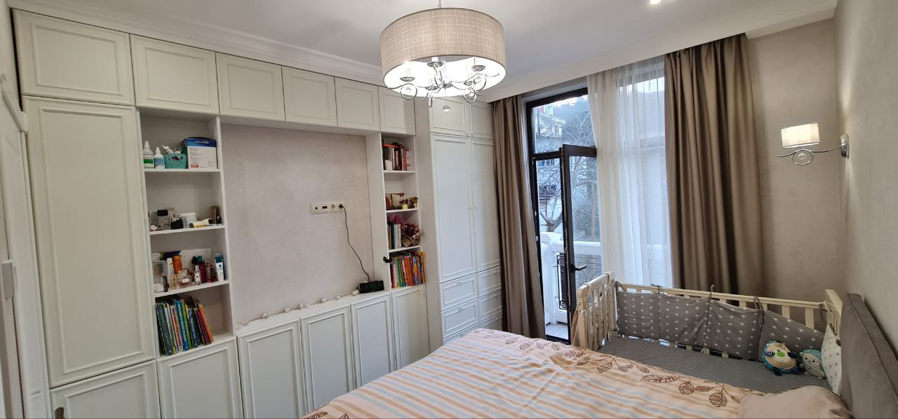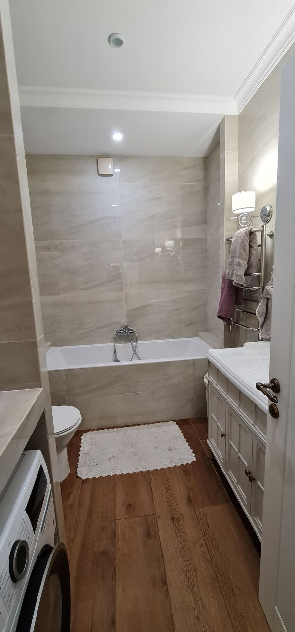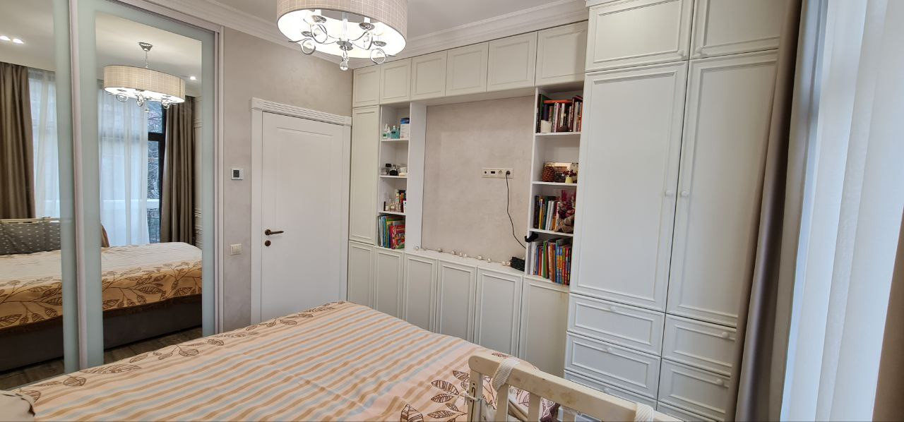 В квартире сделан дизайнерский ремонт с применением дорогостоящих материалов. Комнаты обставлены мебелью, сделанной под заказ и оборудованы всей необходимой техникой. Установлен двухконтурный газовый котел, отопление теплые пол с функцией «Умный дом», встраиваемые внутрипольные конвекторы, кондиционеры, посудомоечная машина, микроволновая печь, газовая четырехконфорочная поверхность, электрическая духовая печь, телевизор. Вся техника ведущих европейских брэндов. Входная дверь с повышенным классом безопасности.