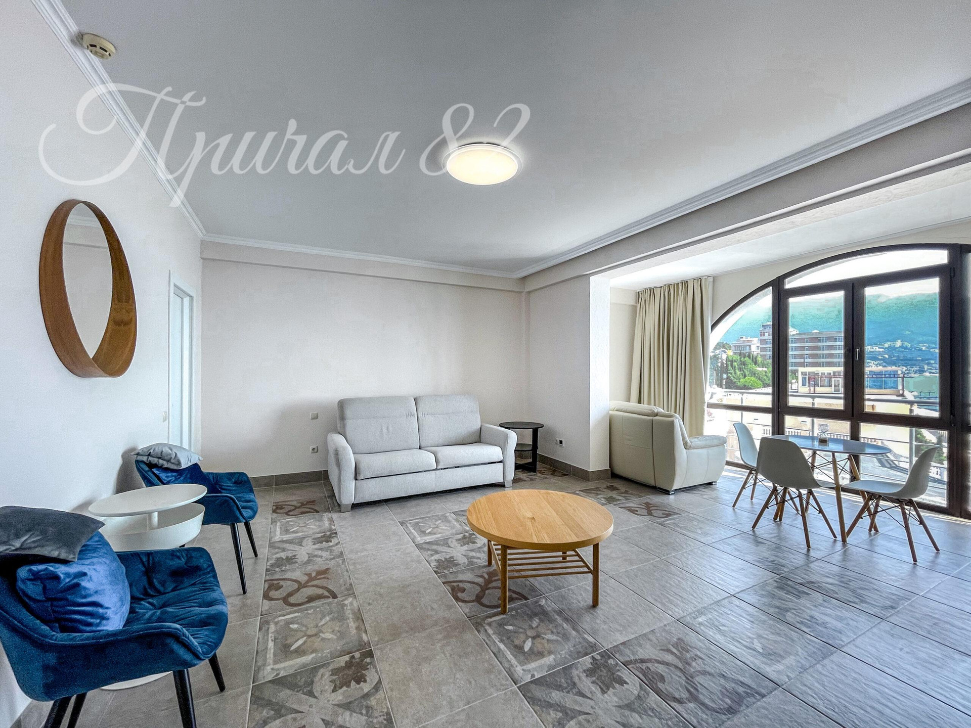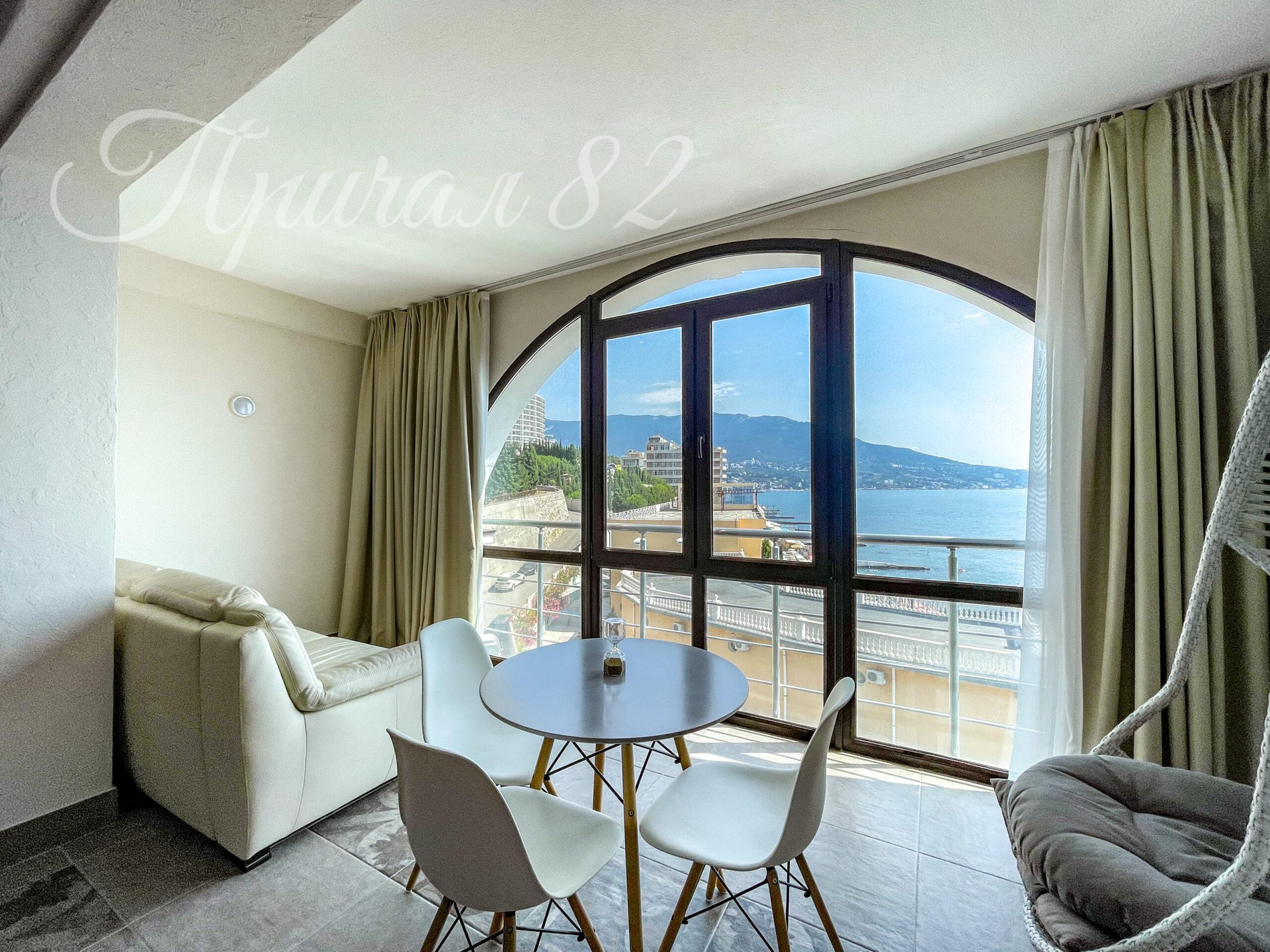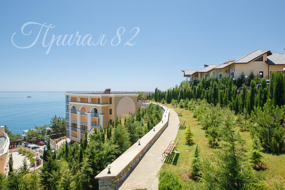Прямо под окнами – оборудованный пляж «Дельфин», SPA-отель «Ливадийский», отельный бассейн с морской водой и Ливадийский парк, откуда выходит Царская тропа.