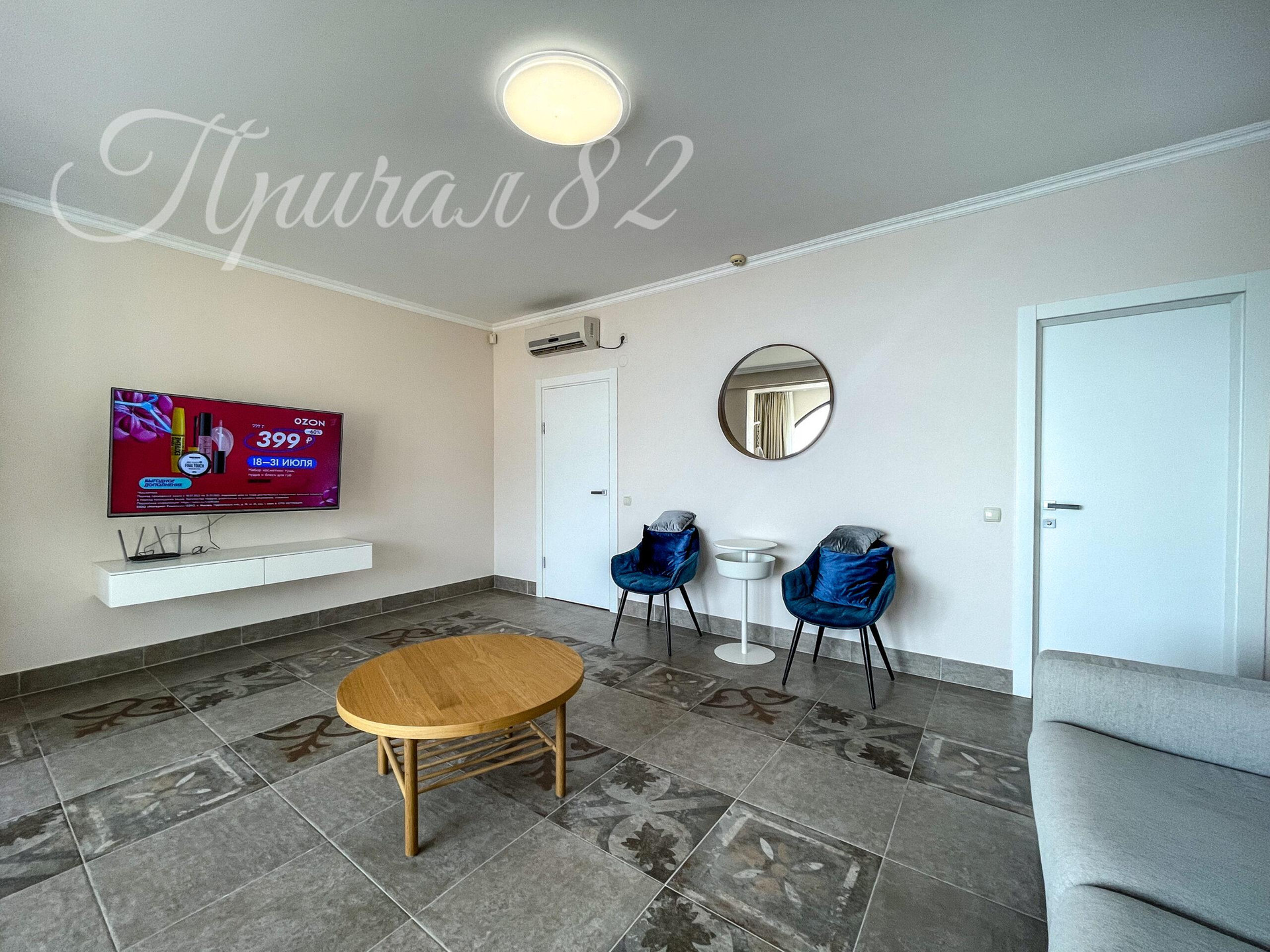 Апартамент оборудован всей необходимой мебелью и бытовой техникой.