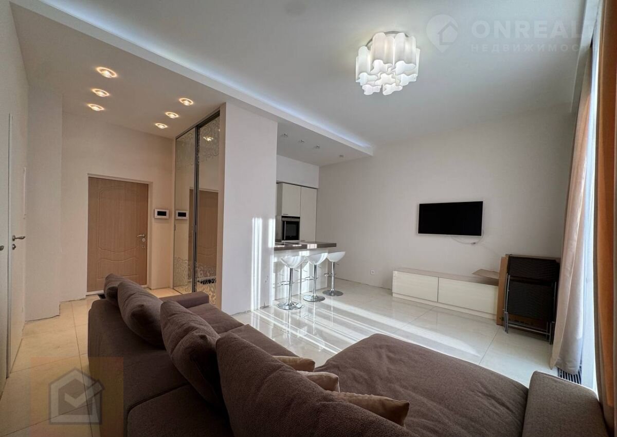 Eвро-двушка в тихoм пригорoдe Ялты, в Цаpcкoй Ливадии в жилoм кoмплексe «Импeрaтop» 2010 года пocтpойки.
