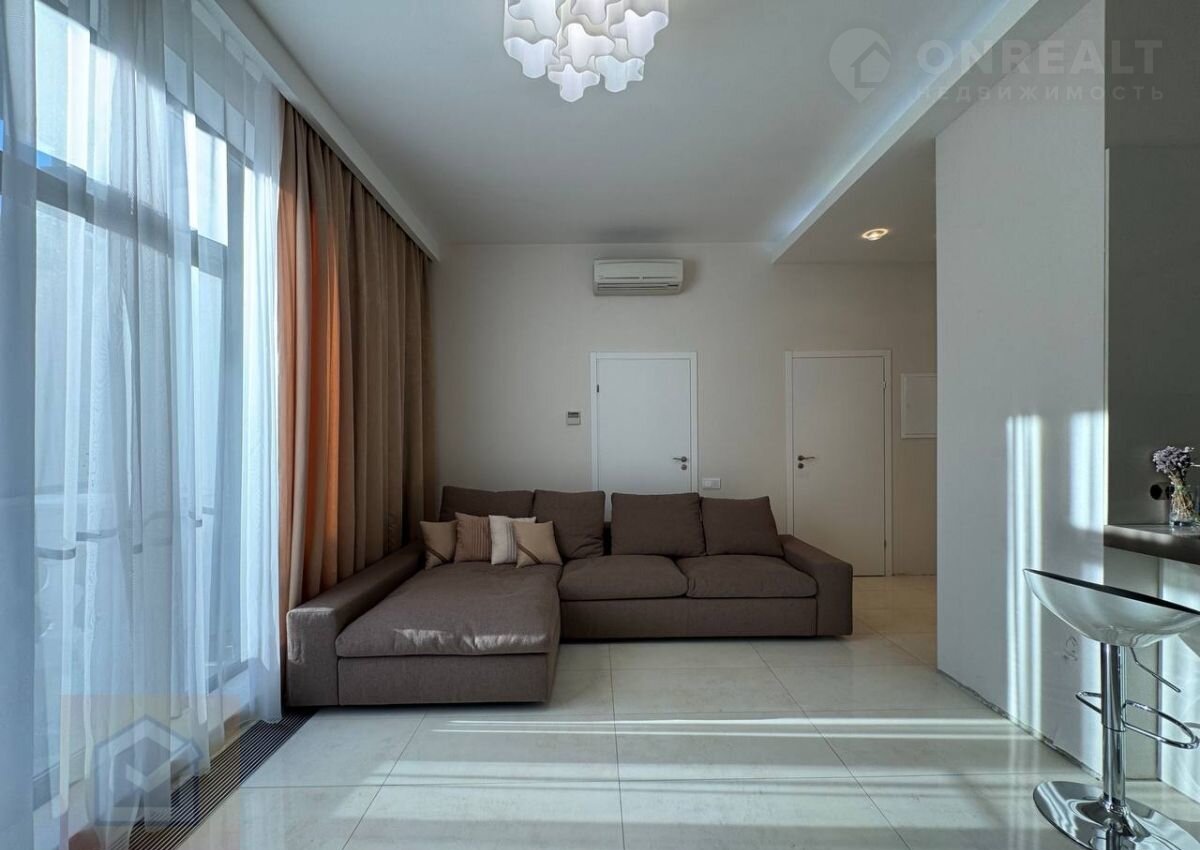 Квартира расположена на 3-м этаже 5-ти этажного жилого дома. Общая площадь составляет 70 кв. м. В квартире одна изолированная спальня, 1 санузел, просторная кухня-гостиная с выходом на балкон.