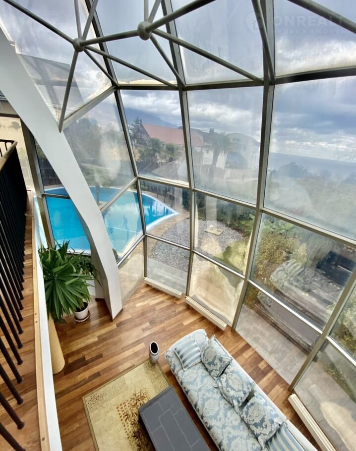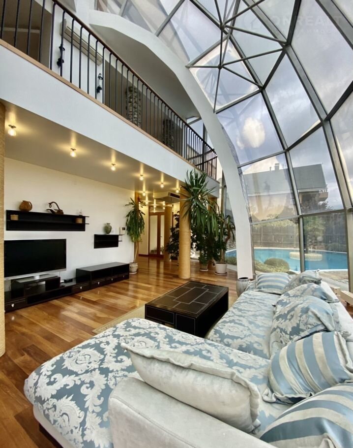 Первый этаж: холл (под стеклянным куполом), кинозал, санузел, кухня-столовая, спальня, санузел.✅