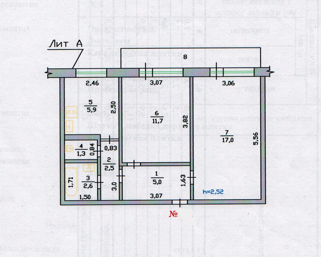 Площадь кухни 6 м2