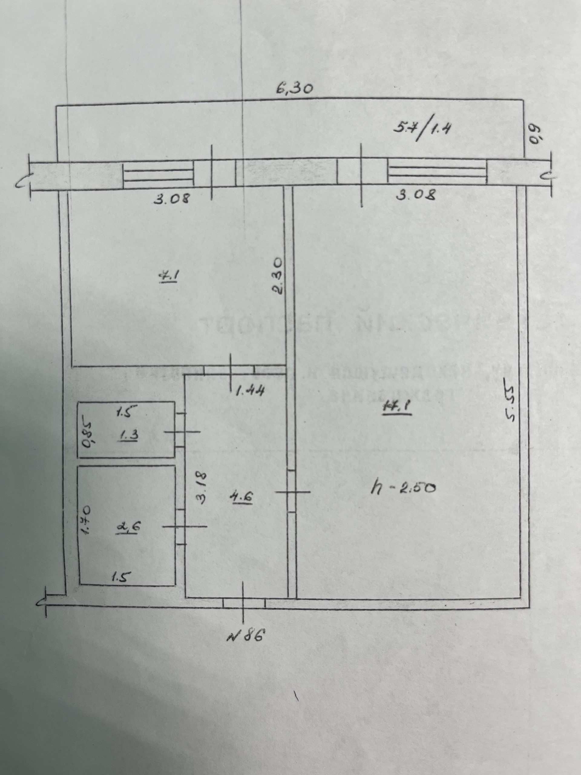 Высота потолков 2.5 м