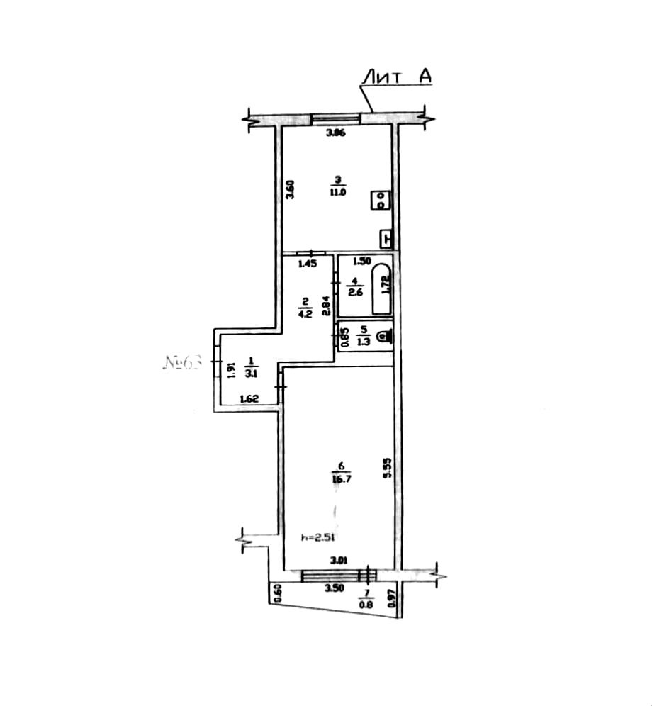 Жилая площадь 16.7 м2