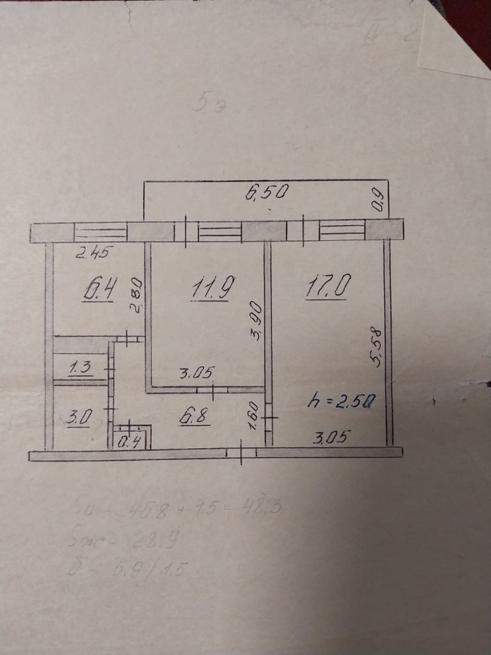 Общая площадь 46.8 м2
