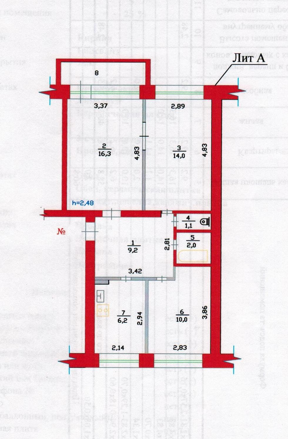 Общая площадь 58.8 м2