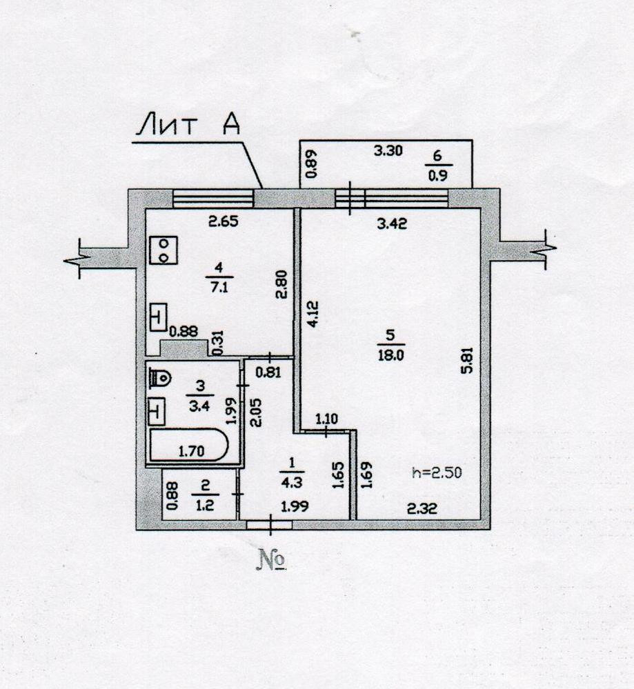 Балкон, лоджия 1 балкон