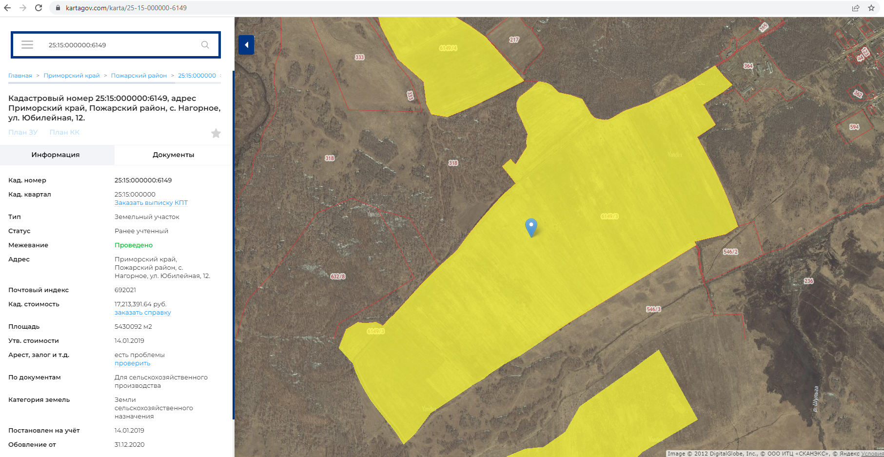 -Участок 543 га, 83.1 га и 121,8 га (25:15:000000:6149; 25:15:010501:327; 25:15:000000:6148) находится рядом с.Нагорное.