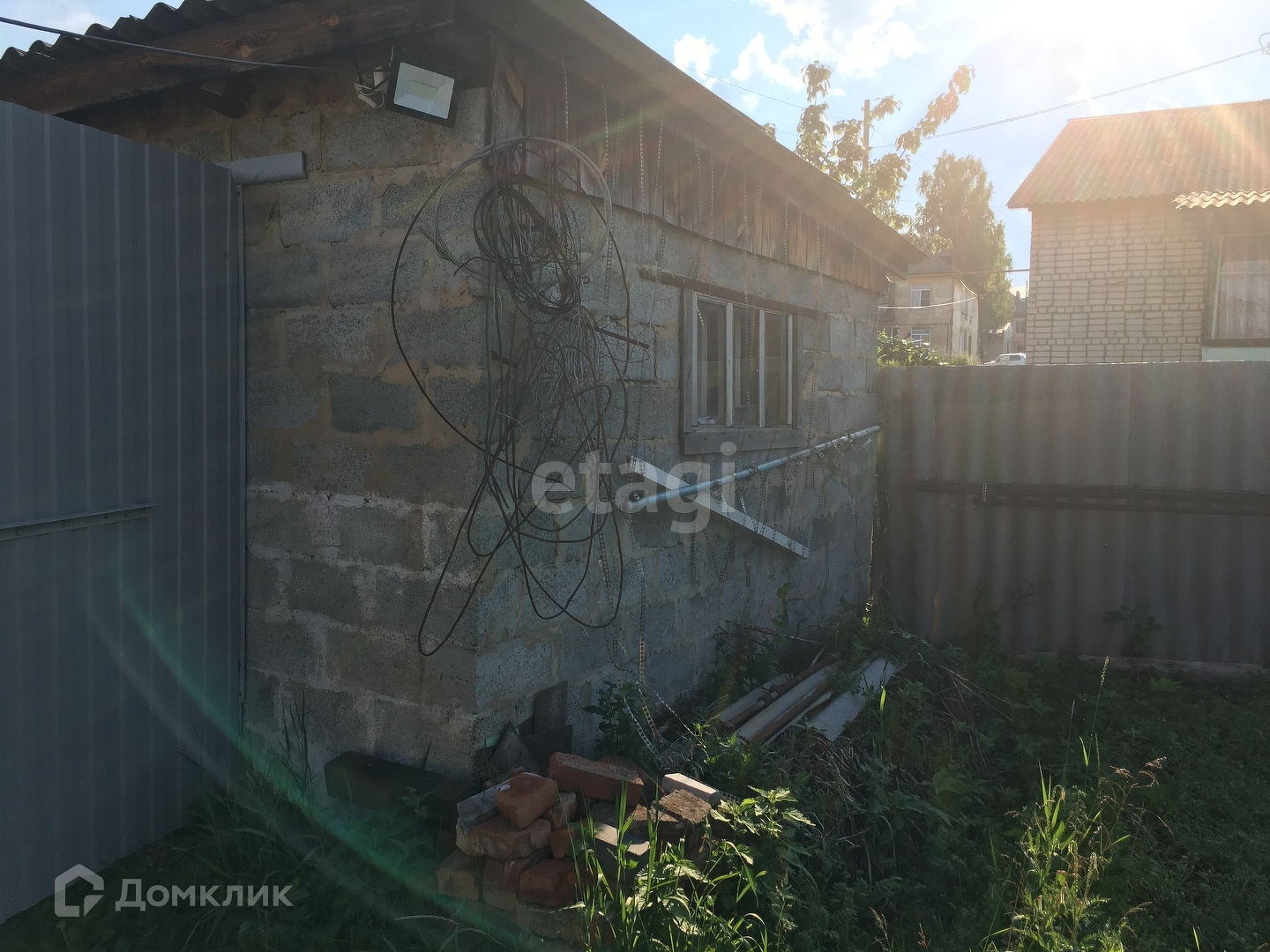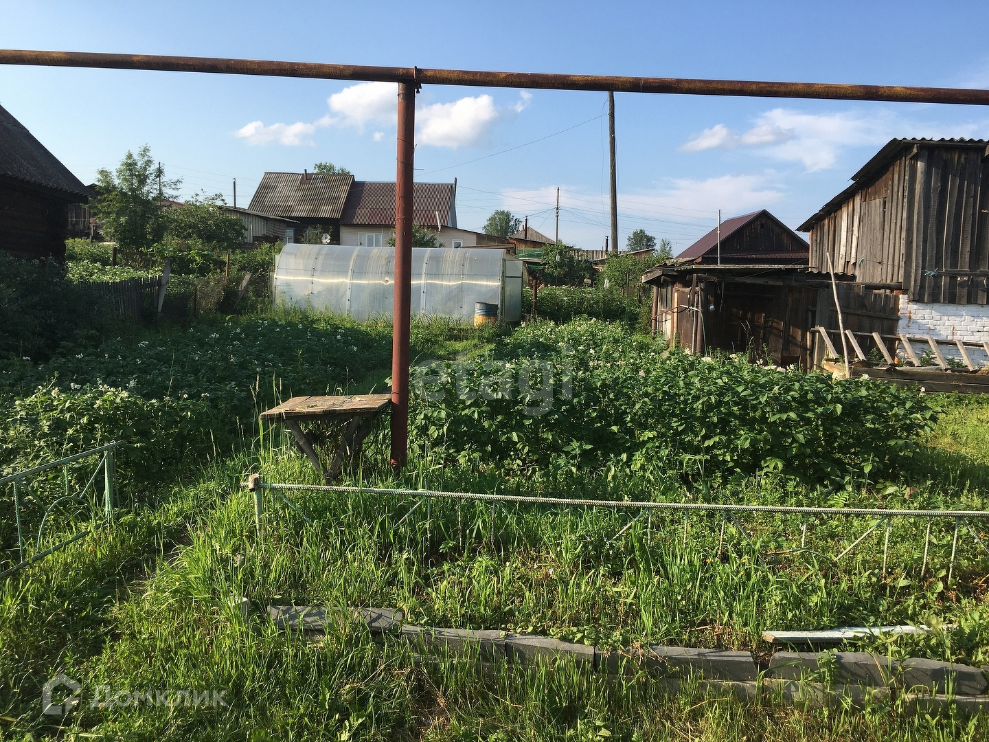 Земельный участок разработан. На нем теплица и сарай из кирпича. Имеется гараж, капитальный, кирпич. Двор открытый. Забор из проф настила.
