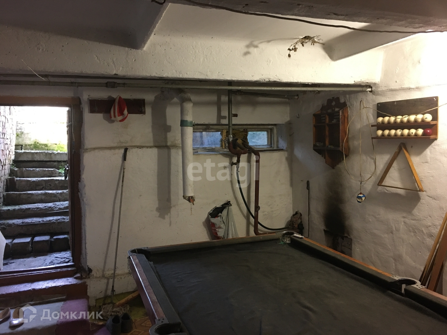 В подвальном помещении находятся: мастерская, бильярдная и баня с ванной и прачечной. Подвальное помещение тоже отапливается. Есть комната для хранения овощей.