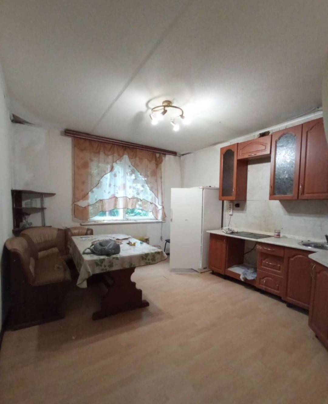 Квартира в коттедже,106 кв.м, есть лоджия,балкон,большая кухня,раздельный санузел. Отопление - дровяной котёл,в подвале. Вода и канализация централизованные.Зем.участок рядом, большая веранда. Расположение - в коттеджном поселке, рядом детский сад, магазин.