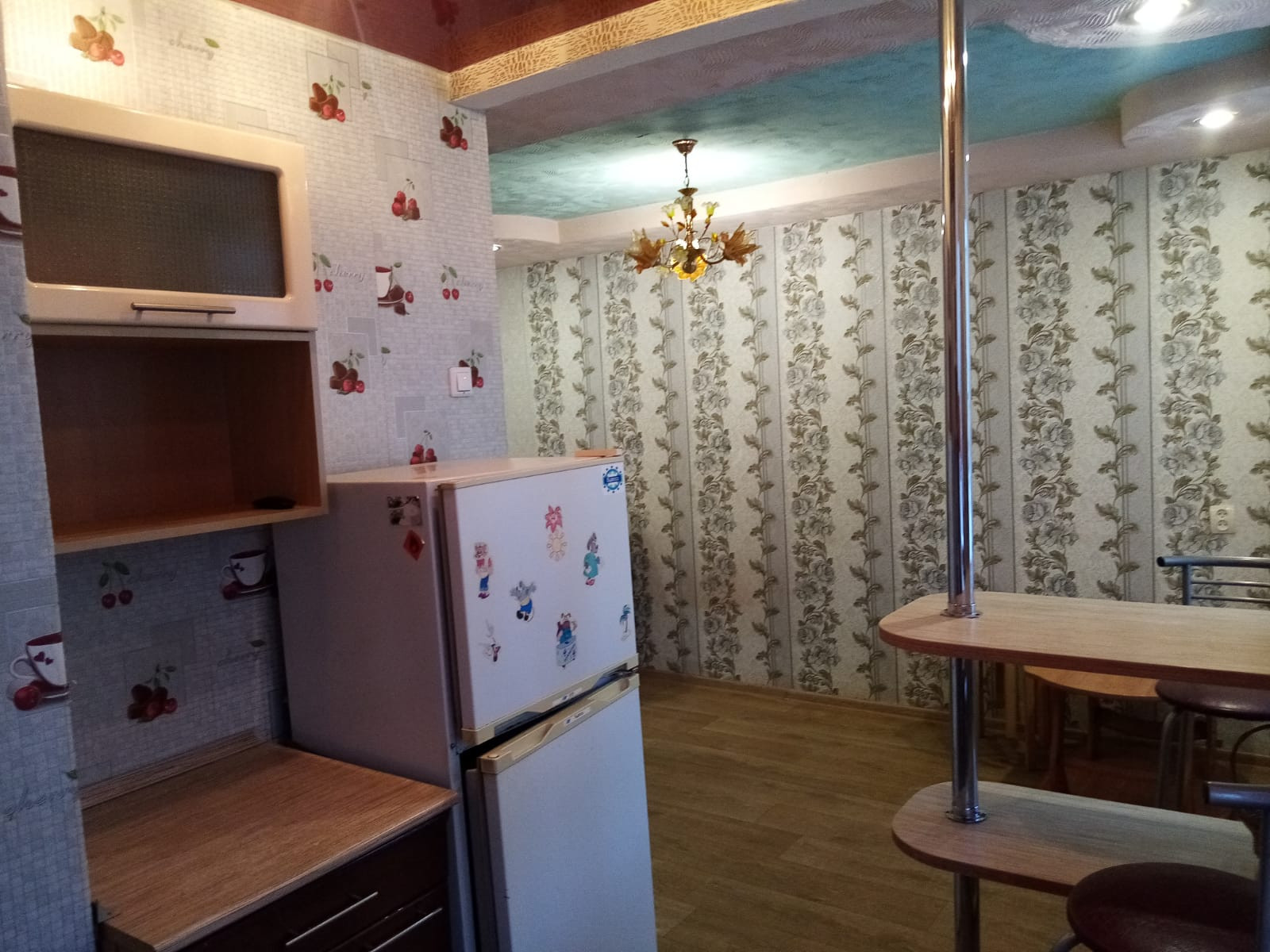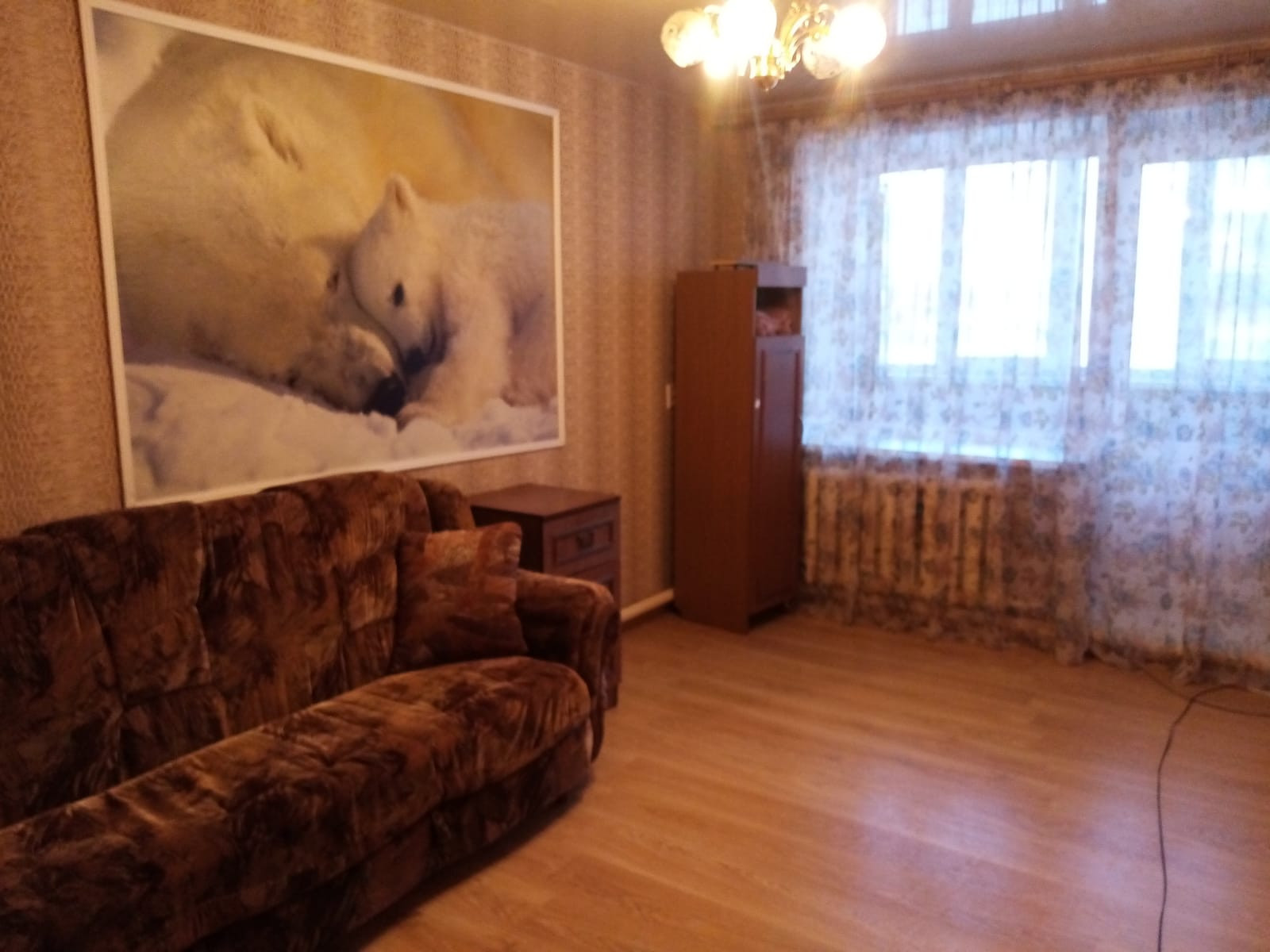 Квартира очень теплая, светлая, балкон застеклен, установлена входная сейф-дверь. В квартире все окна заменены на пластиковые, стены оклеены обоями, в коридоре – декоративная штукатурка, во всей квартире установлены натяжные потолки, на полу –ламинат и линолеум по фанере. В наличии счетчики учета воды и электроэнергии. Горячее водоснабжение – автономное (накопительный электрокотел). Санузел совмещенный, облицован пластиковыми панелями.