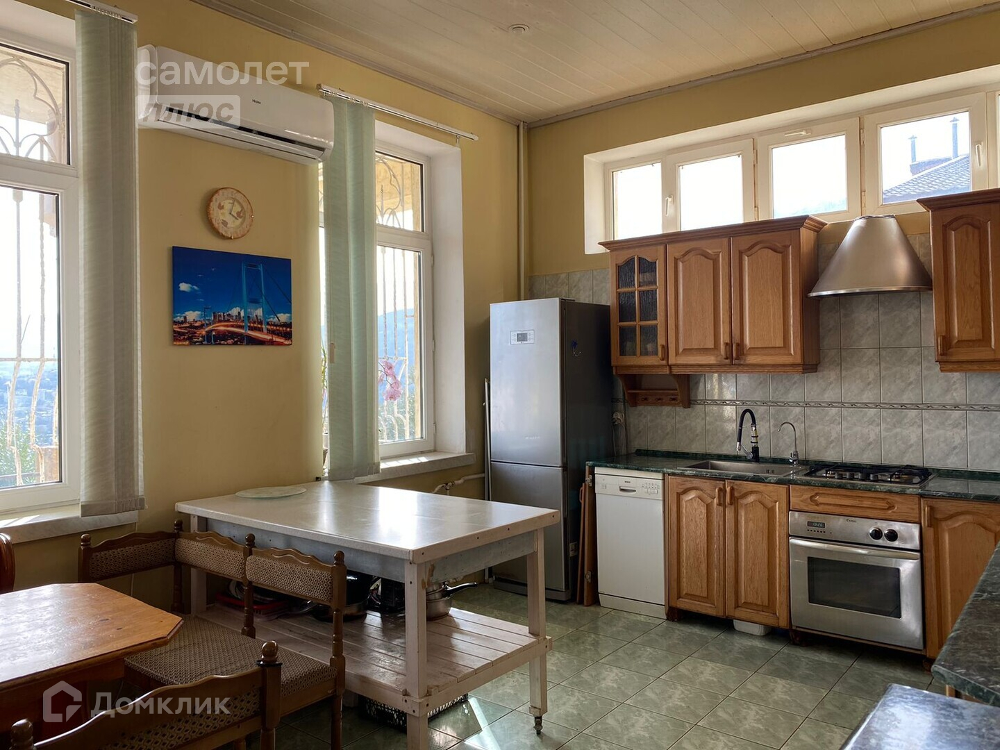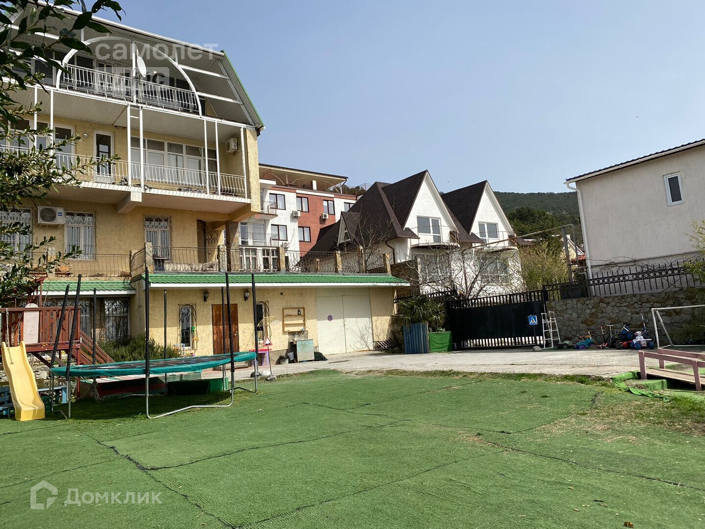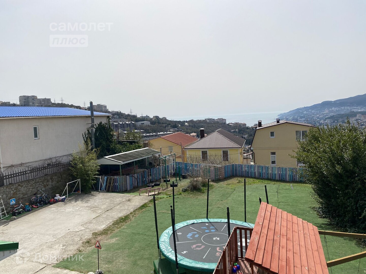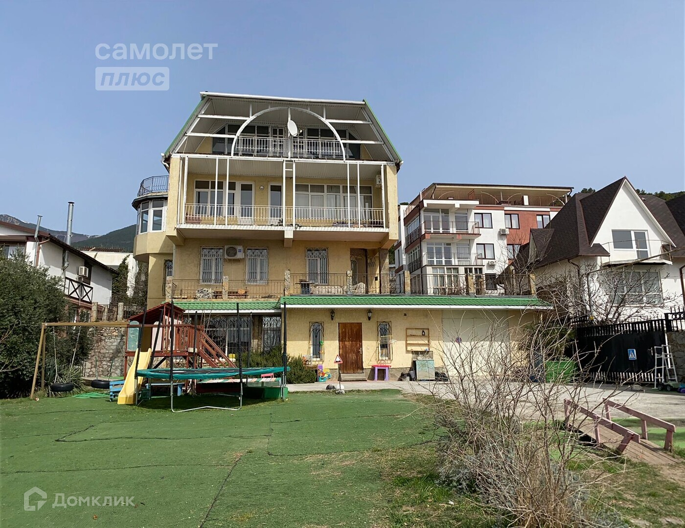 Продается трехэтажный дом с мансардой площадью 610 квадратных метра на 5,5 сот. земли в частной собственности и 9,5 сот. в аренде под обслуживание жилого дома. Всего в доме 4 спальни, на каждом этаже санузел, 2 балкона, а также огромная терраса 35 кв. м с выходом из кухни, которая совмещена с гостиной. Пол паркетный. Три отдельных выхода на территорию с каждого этажа. В уютном дворе находится собственная детская площадка. Террасы первого и второго этажа, а также два балкона, расположенных на третьем этаже, подчеркивают преимущества этого дома, давая возможность, любоваться горой Ай-Петри и бескрайним морем, уходящим до самого горизонта. Дом расположен 10м. над уровнем моря, что соответствует высоте расположения Ливадийского, Алупкинского и Массандровского дворцов, излюбленных мест отдыха российских царей и императоров, где чистый морской воздух, поднимаясь, смешивается с фитонцидами, спускающимися от хвойных горных лесов. Этот чудесный воздух позволит вам получать все преимущества арома- и климатотерапии. Большая и уютно обставленная гостиная с камином, расположенная на втором этаже. Четыре спальни, расположены на трёх этажах, позволят не только с комфортом жить всем членам вашей семьи, но и разместить большое количество гостей. На первом этаже расположен зал для игры в бильярд. Для поддержания здоровья тела, в доме имеется собственный СПА-центр: баня на дровах с бассейном.