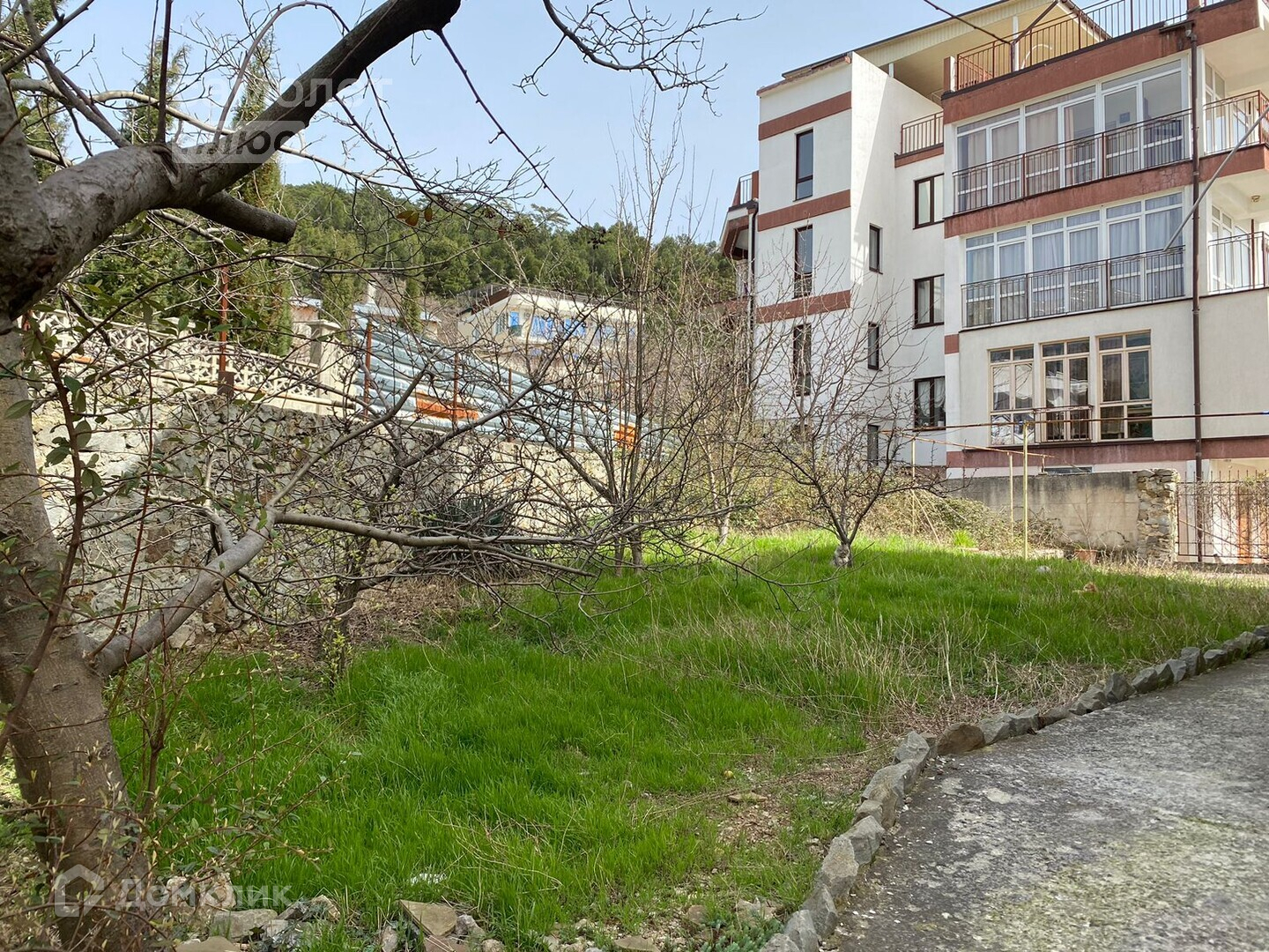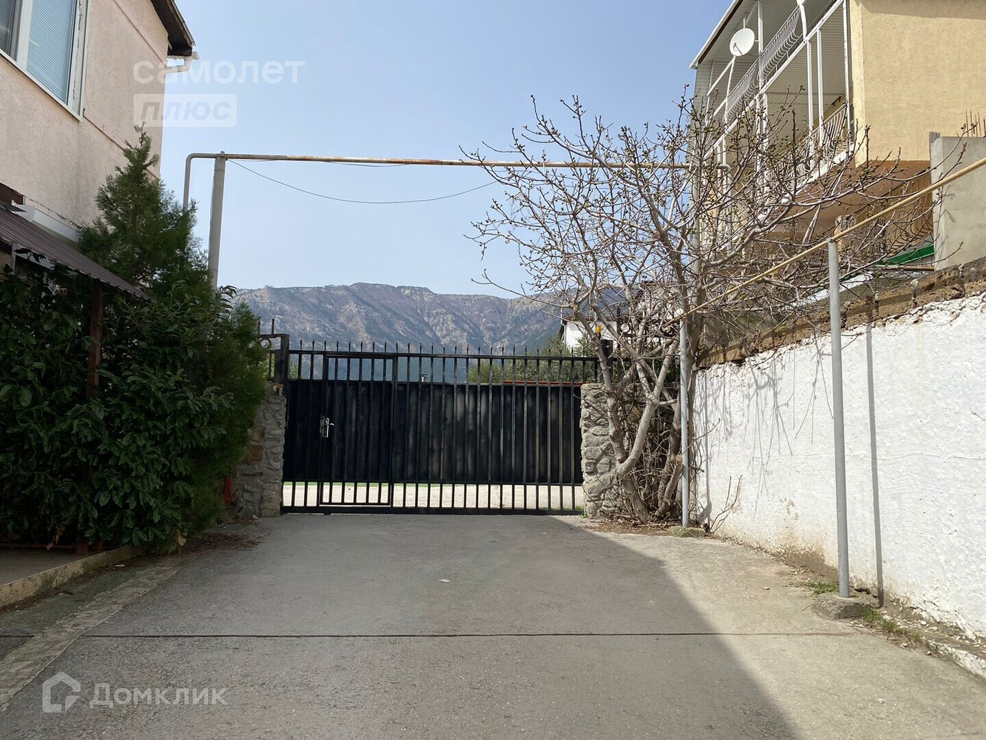 Двор ландшафтный дизайн с экзотическими растениями, в том числе на участке: оливковое дерево,инжир, кактусы, юки,благородный лавр, в саду произрастают фруктовые деревья – черешня, яблоки, груши, вишня, гранат. Кованые ворота и калитка во двор.