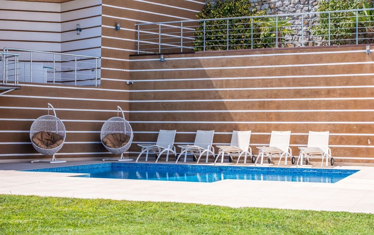 * Открытый плавательный бассейн с подогревом и подсветкой (7,5 на 5 метров)