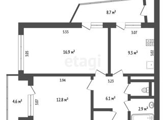 Продажа двухкомнатной квартиры, 54.7 м2, улица Винодела Егорова, 15
