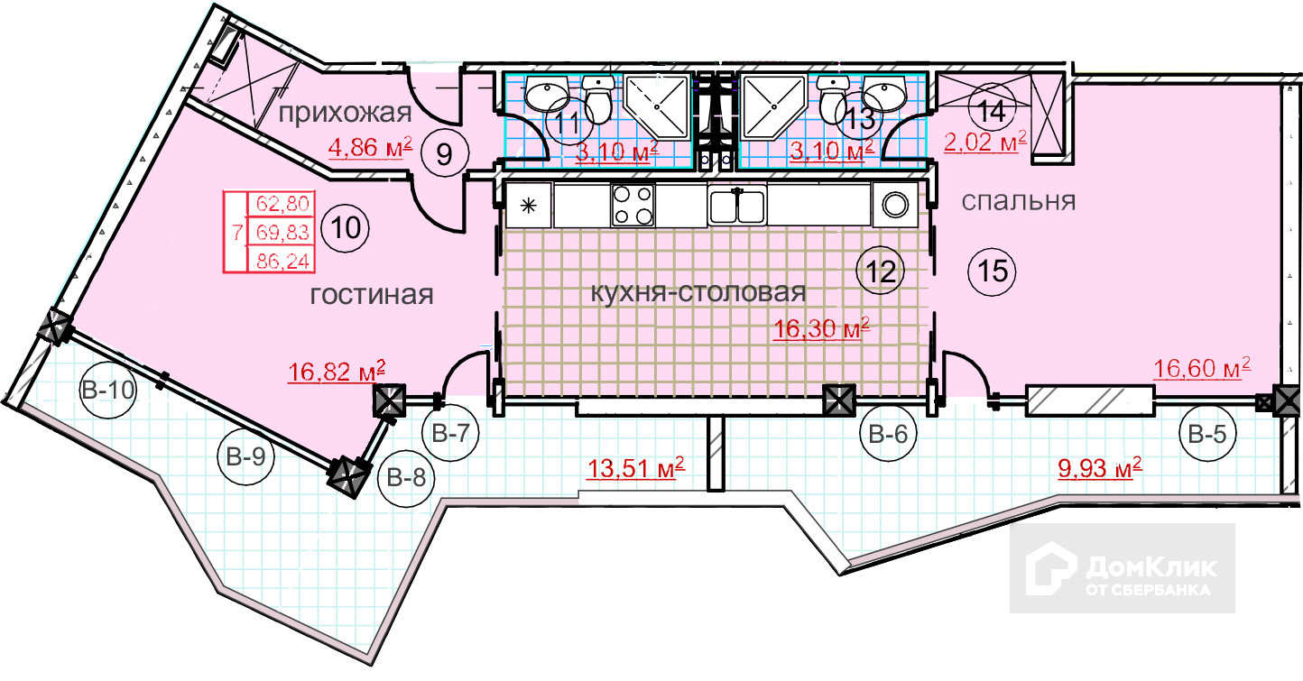 Общая площадь 86 м2