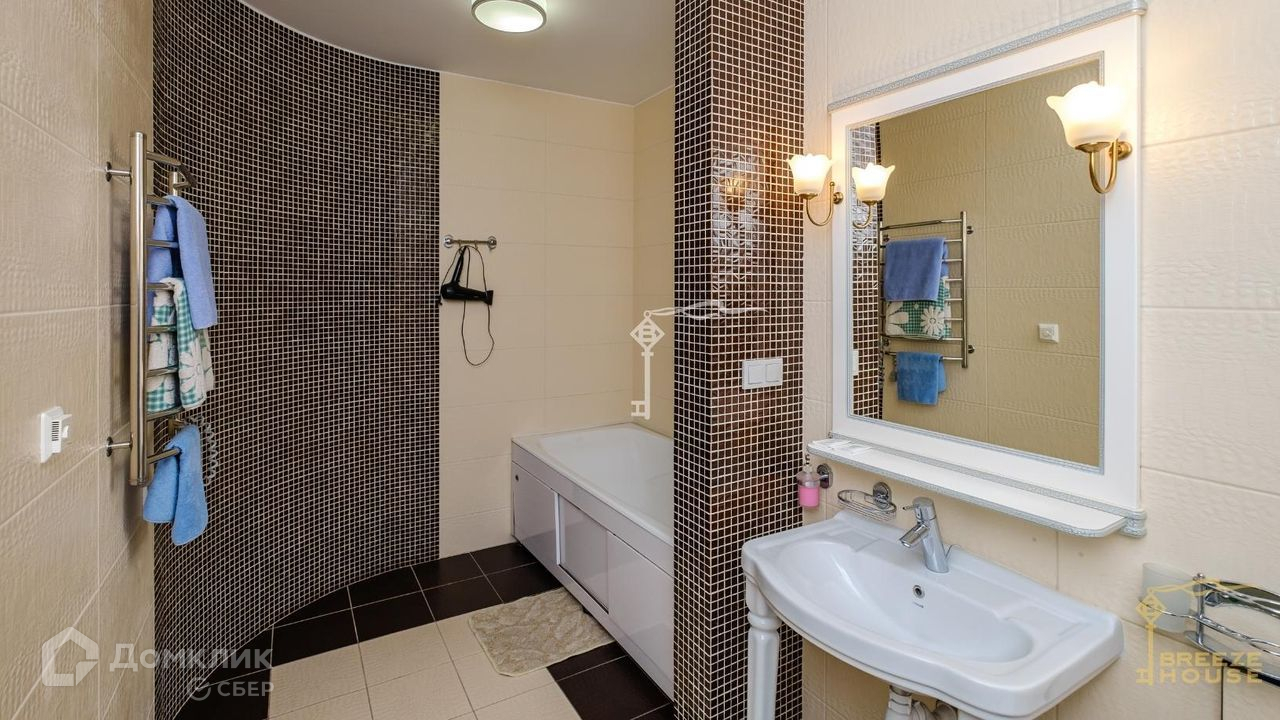 Видовая и просторная кухня-гостиная оборудована современной техникой. В комфортных санузлах с теплыми полами установлены тропический душ и джакузи.