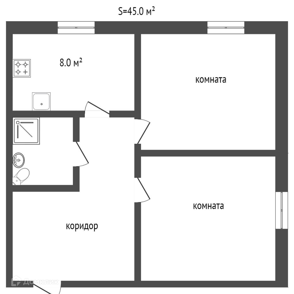 Общая площадь 45 м2