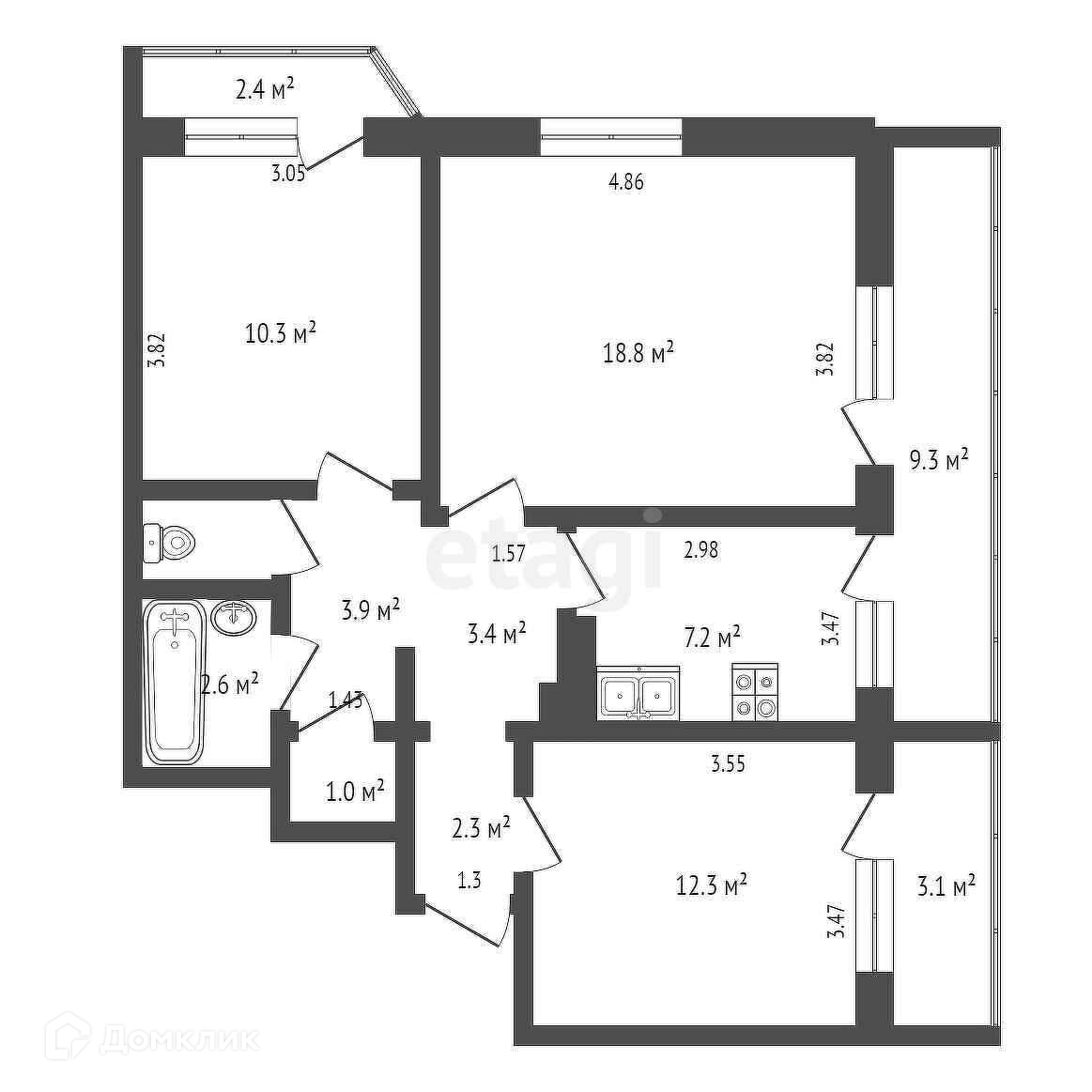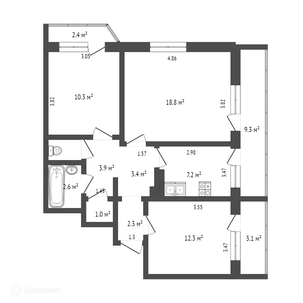 Общая площадь 70.5 м2